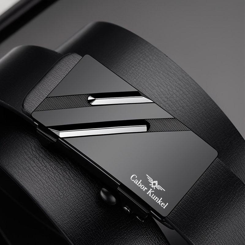 Upgrade your style with this sleek faux leather belt featuring an automatic alloy buckle. Perfect for any outfit or occasion.