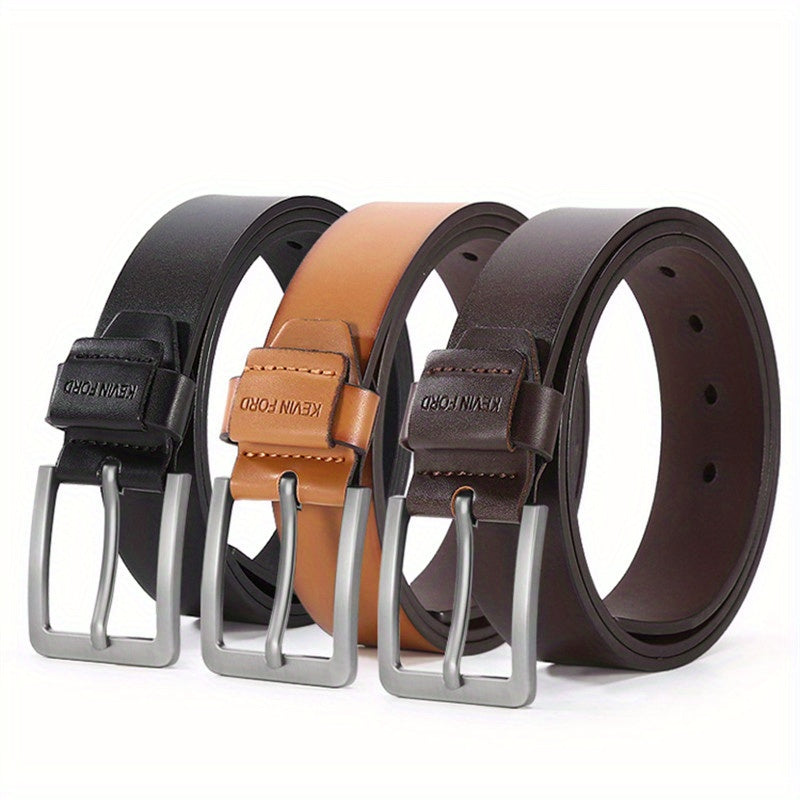 This versatile belt is perfect for young and middle-aged men. Made from faux leather, it features a punched buckle design suitable for jeans and casual attire.