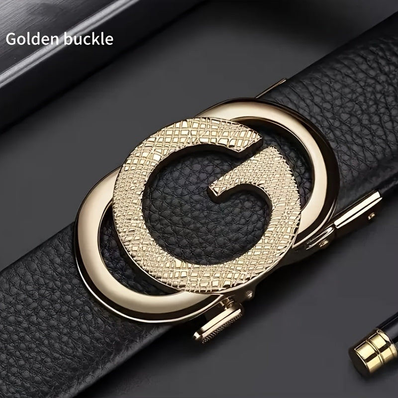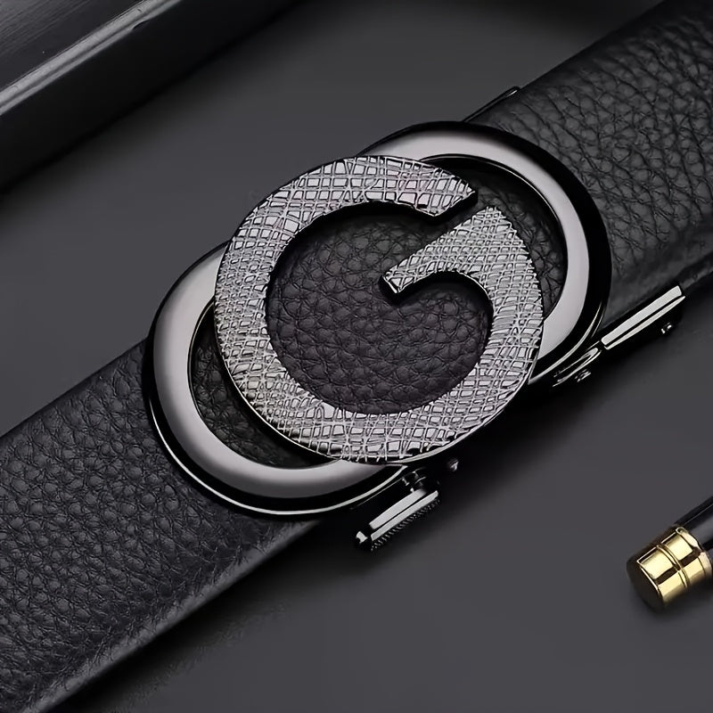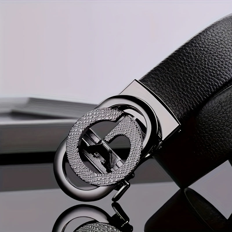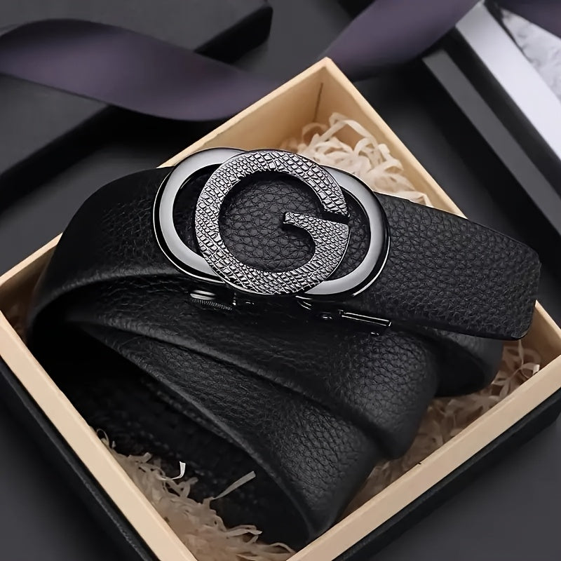 Upgrade your dad's style with this chic faux leather belt featuring embossed detailing and a stylish lychee grain strap. Ideal for anniversaries or special occasions.