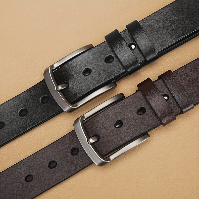This men's faux leather belt features a fashionable alloy buckle head with a vintage double-sided design. It is suitable for both business and casual wear, perfect for young people looking for a retro style.