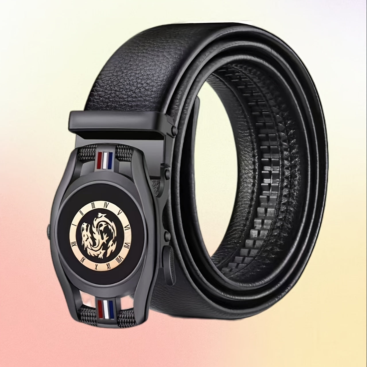 This stylish belt is perfect for both casual and formal wear. It features a textured faux leather material and an automatic alloy buckle. Ideal as a birthday or Valentine's gift.