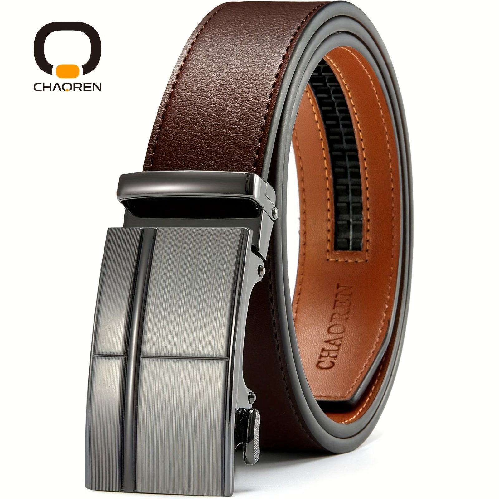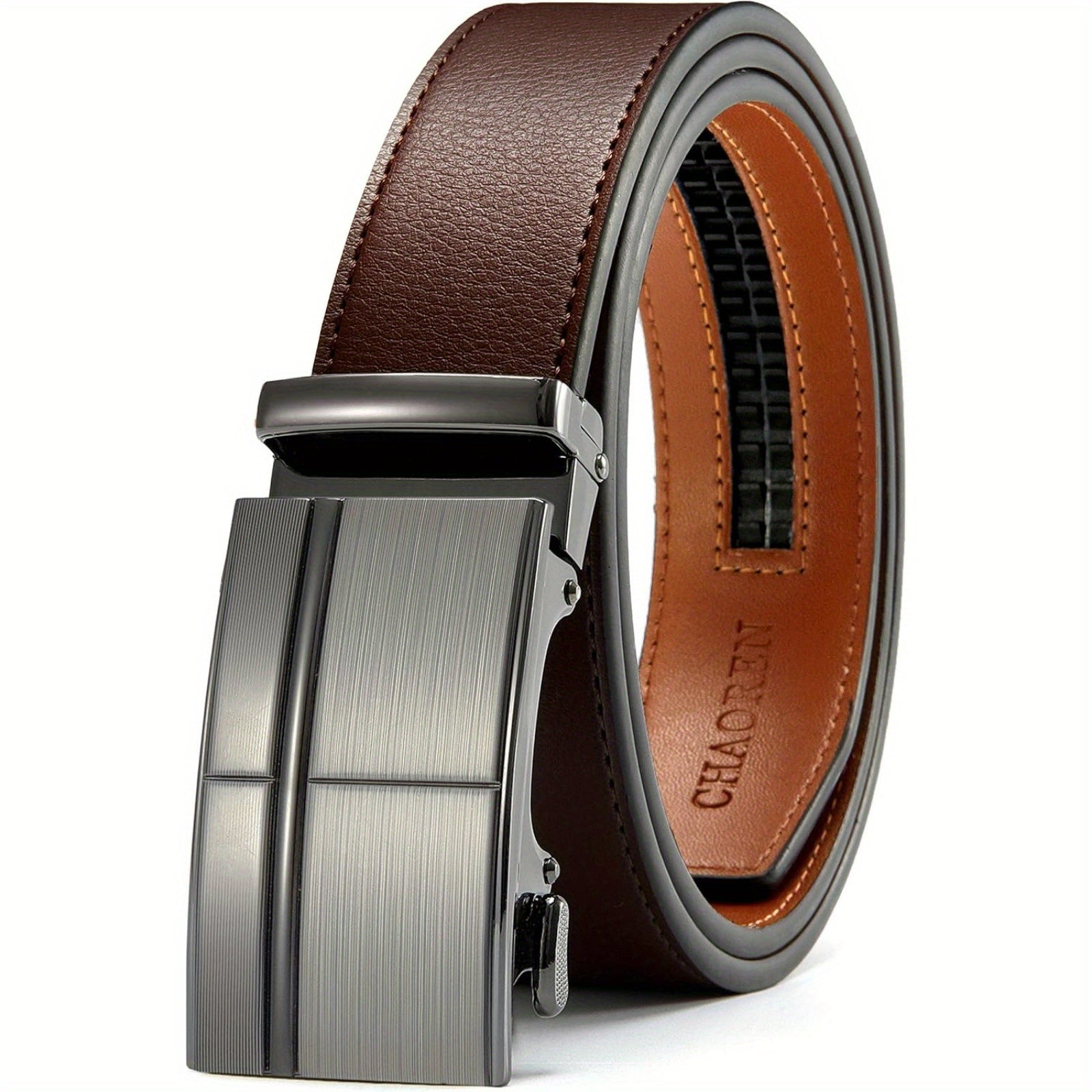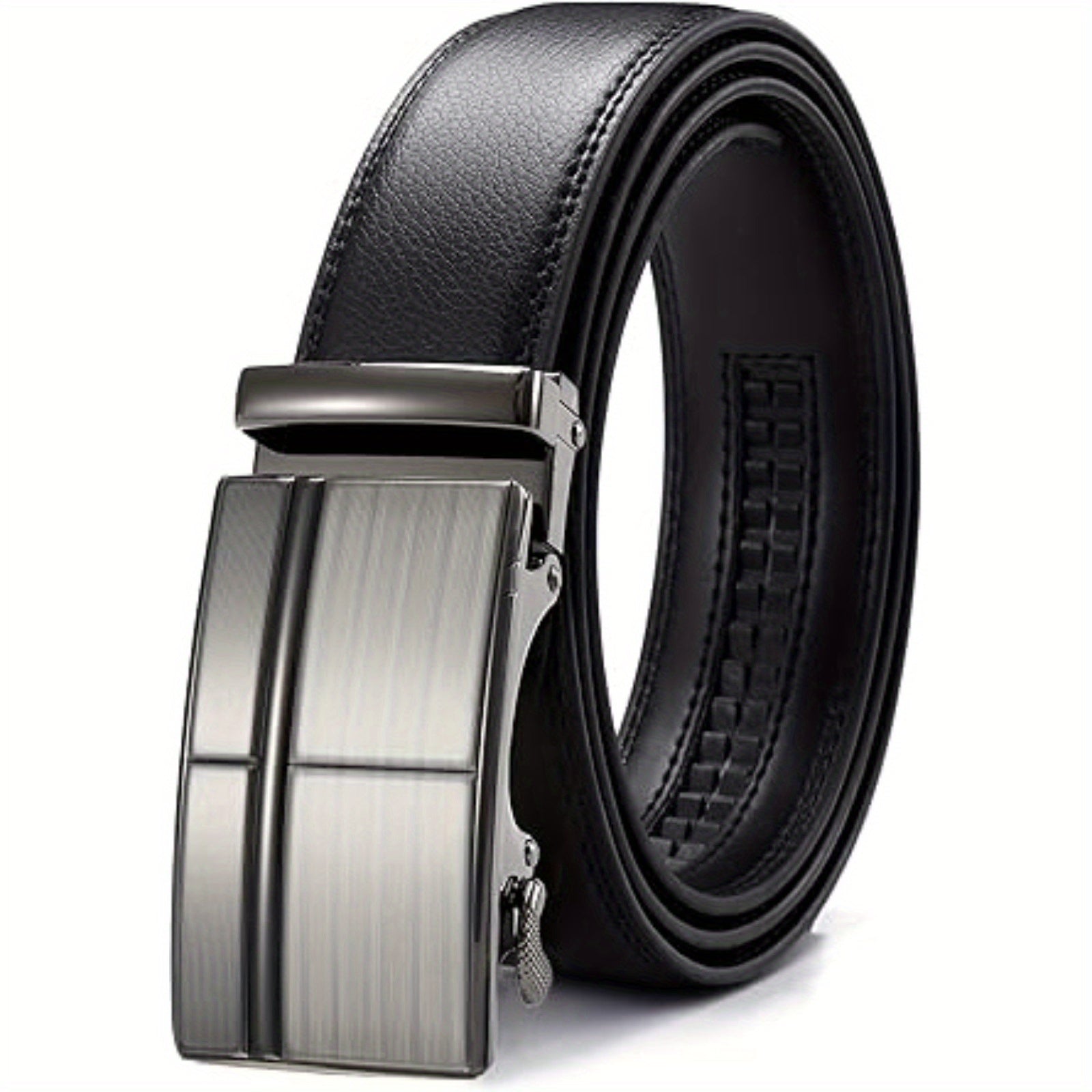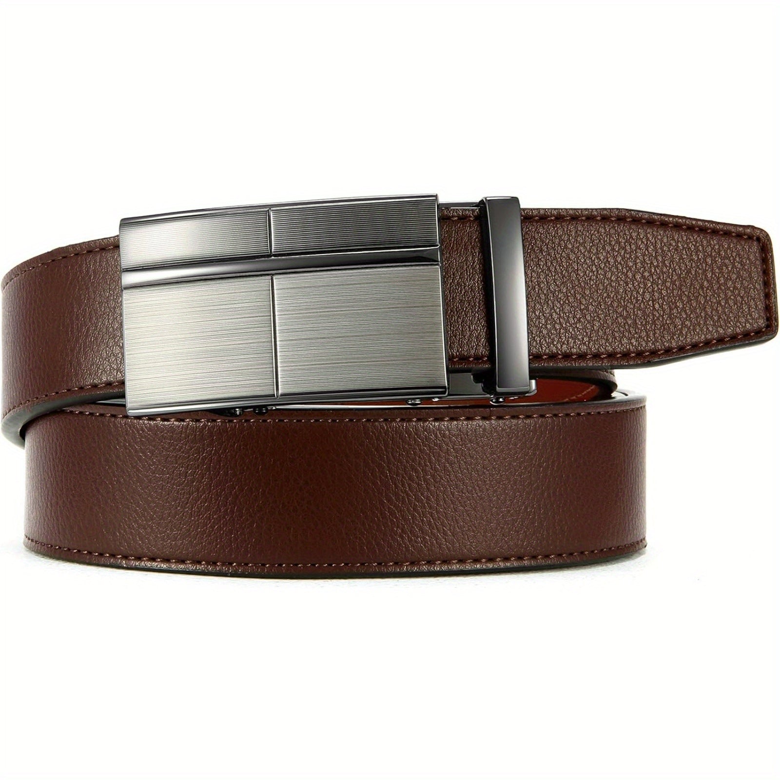 Upgrade your belt game with this stylish and versatile faux leather ratchet belt. Perfect for jeans and dress pants, this business casual belt features an automatic buckle for easy adjustments.