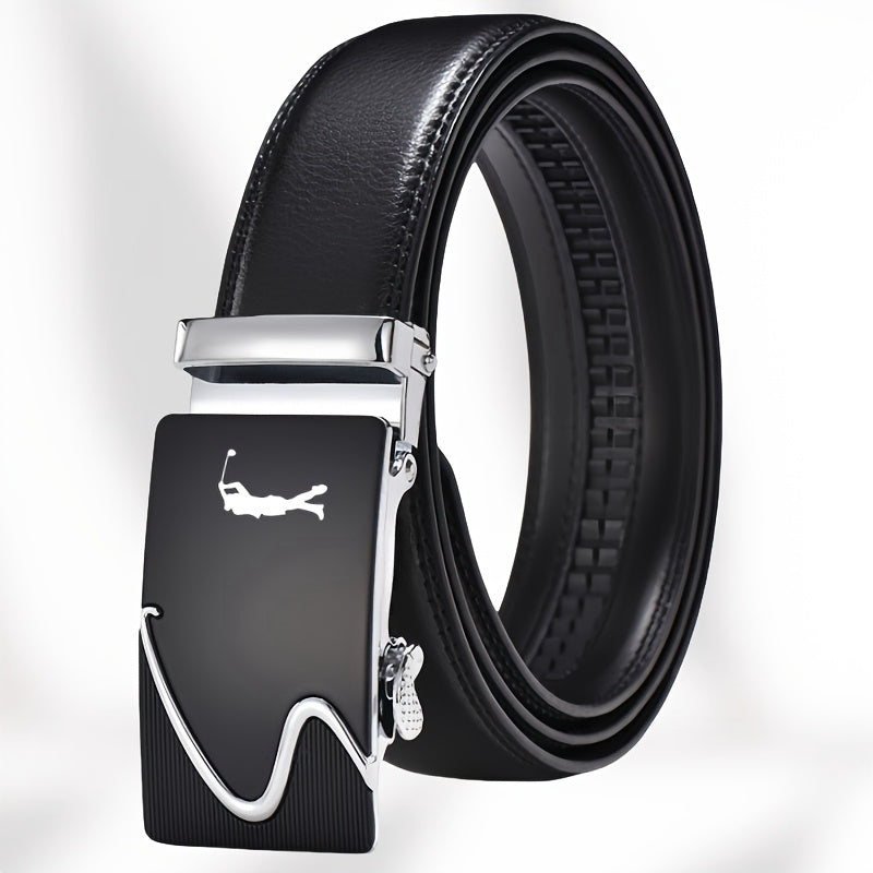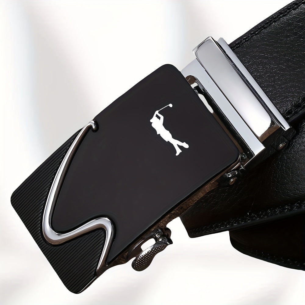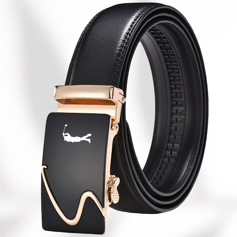 Elevate your golf style with this stylish belt featuring a sleek pattern design. Made of durable faux leather with an automatic alloy buckle in rose gold finish.