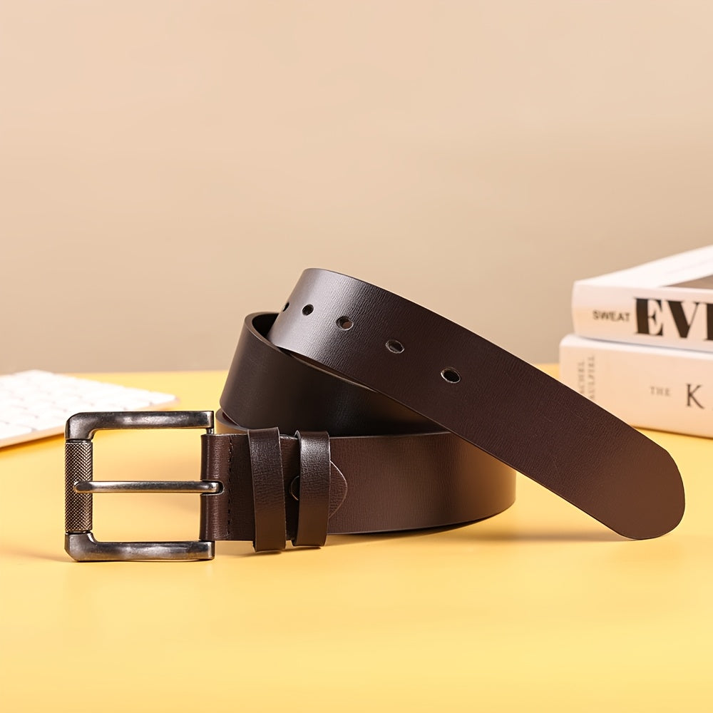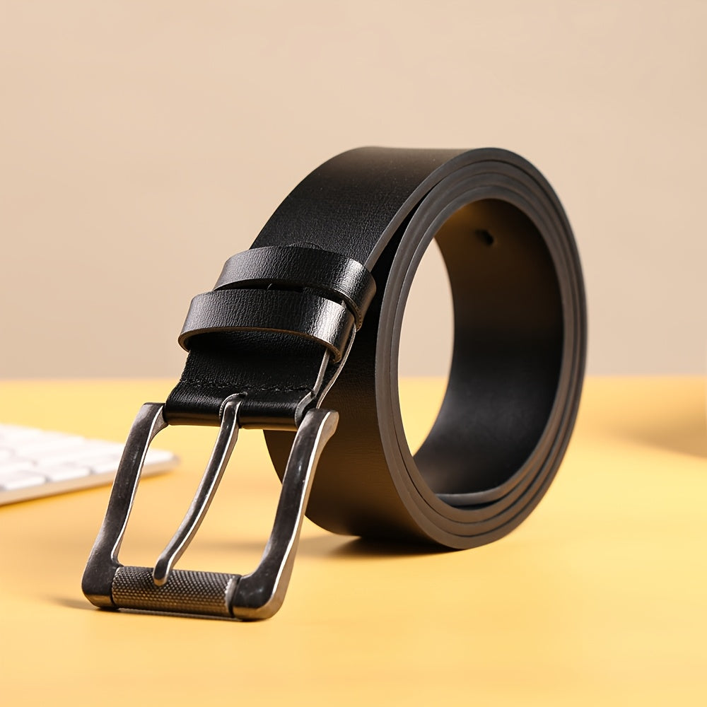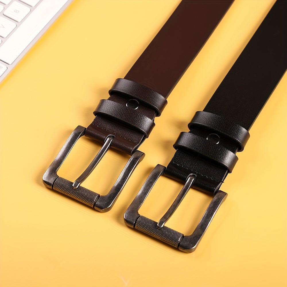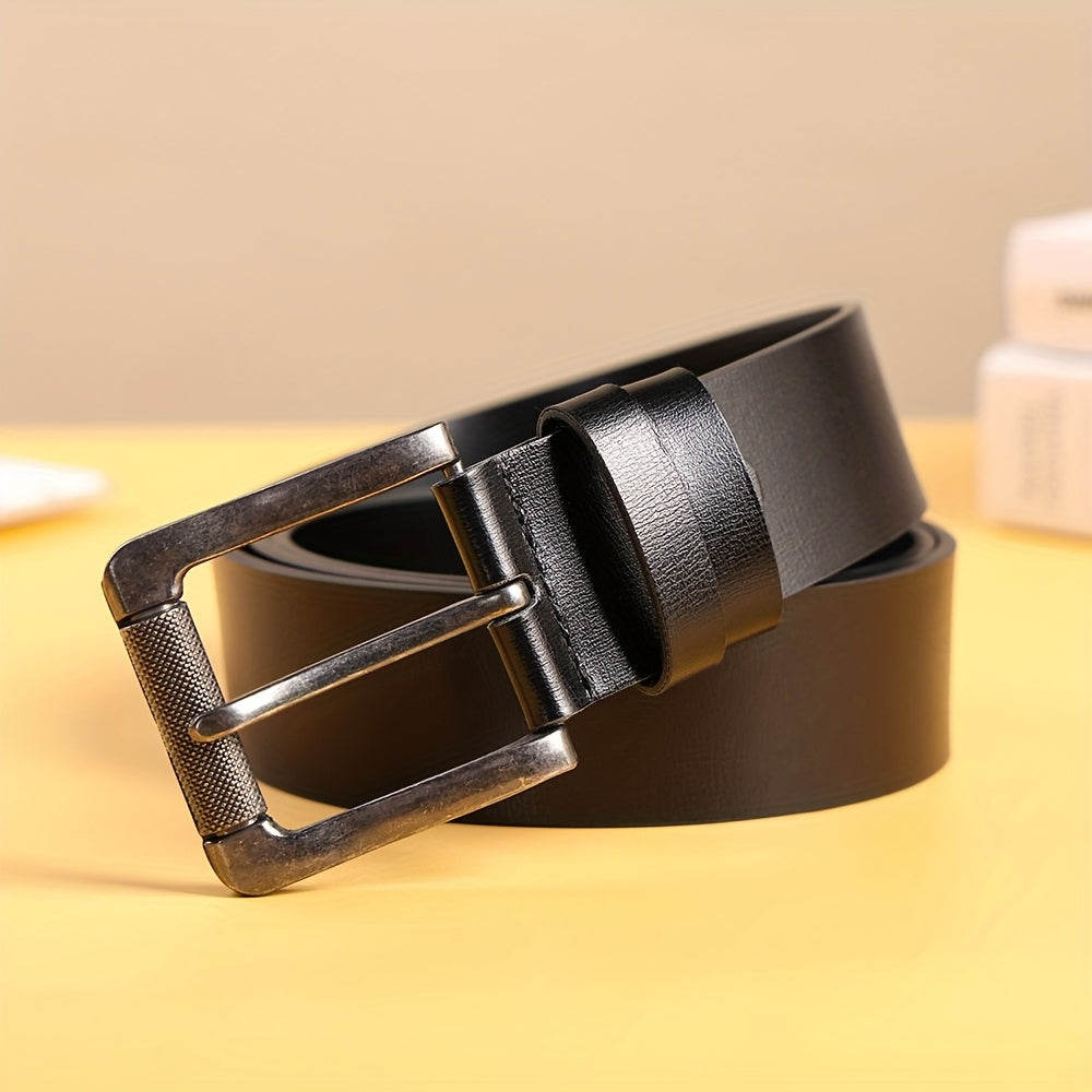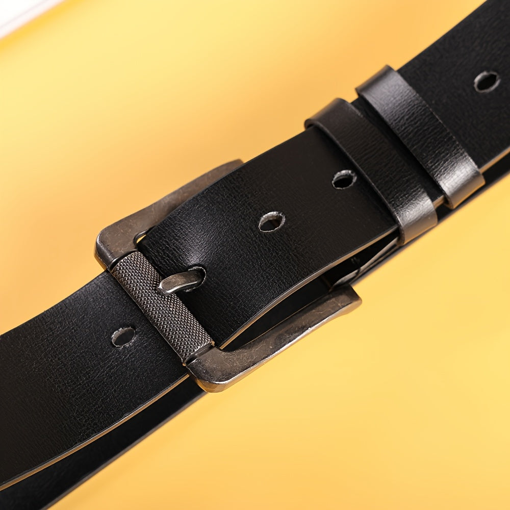 This men's leather belt features a classic retro casual style with a smooth texture, making it a perfect gift for men. The sleek design and high-quality alloy square buckle add a stylish touch to any outfit.