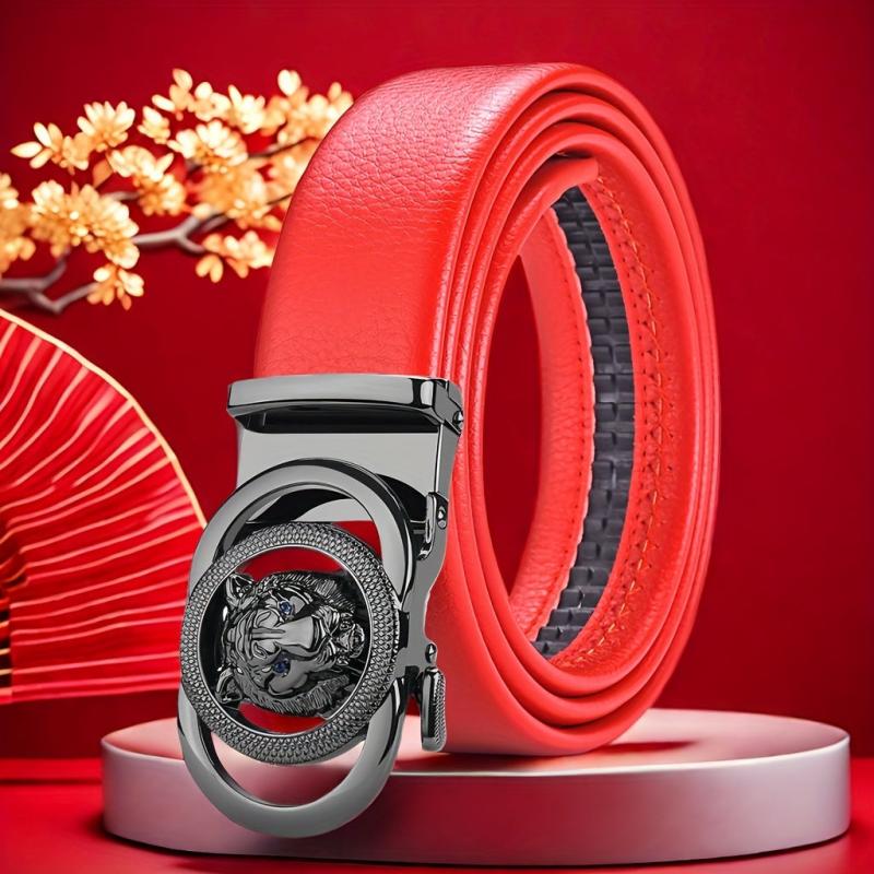 This men's leather belt features a stylish golden tone automatic buckle, making it perfect for business, casual, or wedding attire. It's a great gift for husbands and fathers.