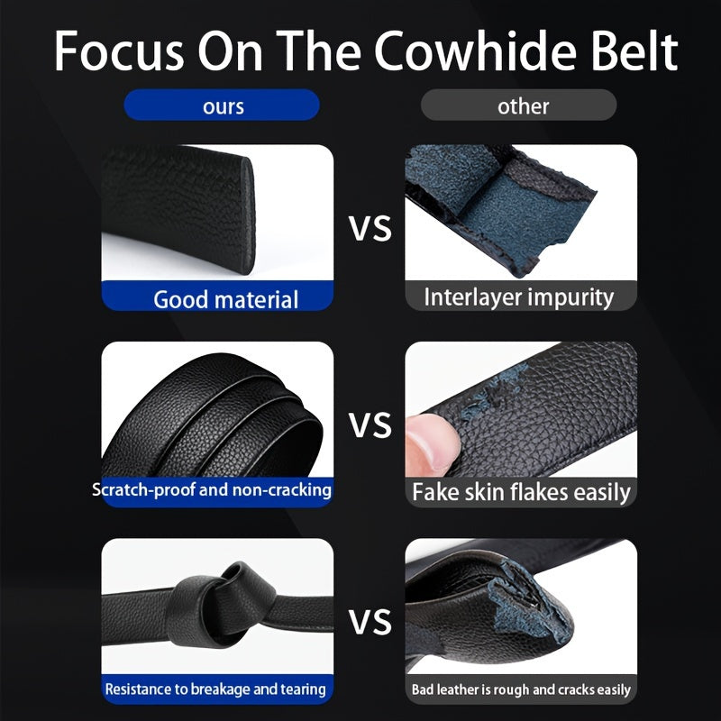 Elevate your style with this genuine leather cowhide belt. Perfect for both suits and jeans, this accessory is a versatile and classic addition to your wardrobe.