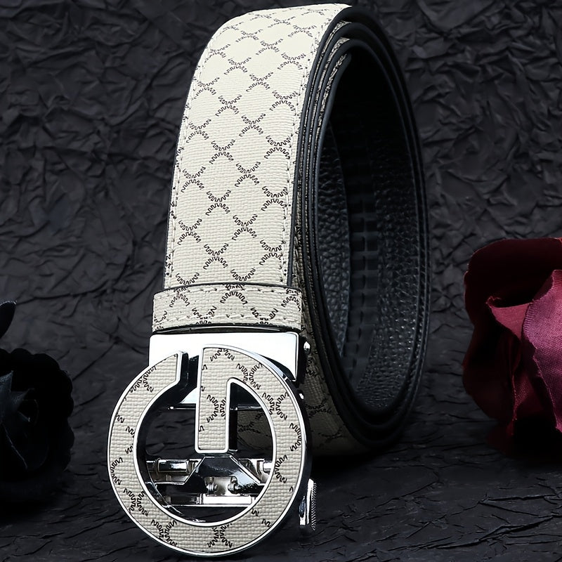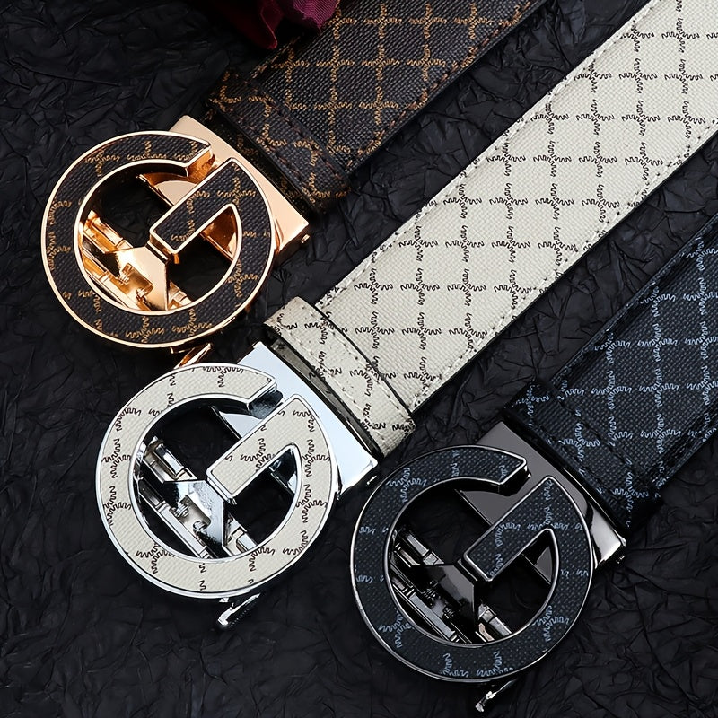 Elevate your style with this high-quality men's belt featuring letter elements and an automatic buckle. Perfect for outings, leisure, or business attire.