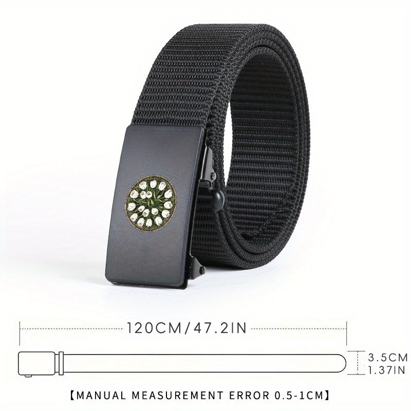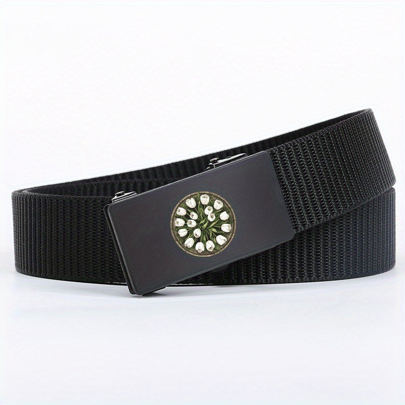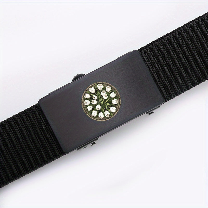 Look stylish and professional with this modern woven belt featuring a round floral pattern. Perfect for business attire.