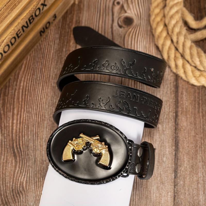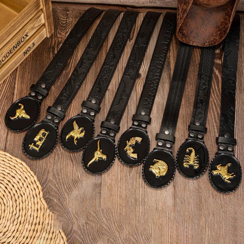 Add a touch of funky style to your outfit with this PU leather belt featuring a plated oval buckle. Available in regular size for a comfortable fit.