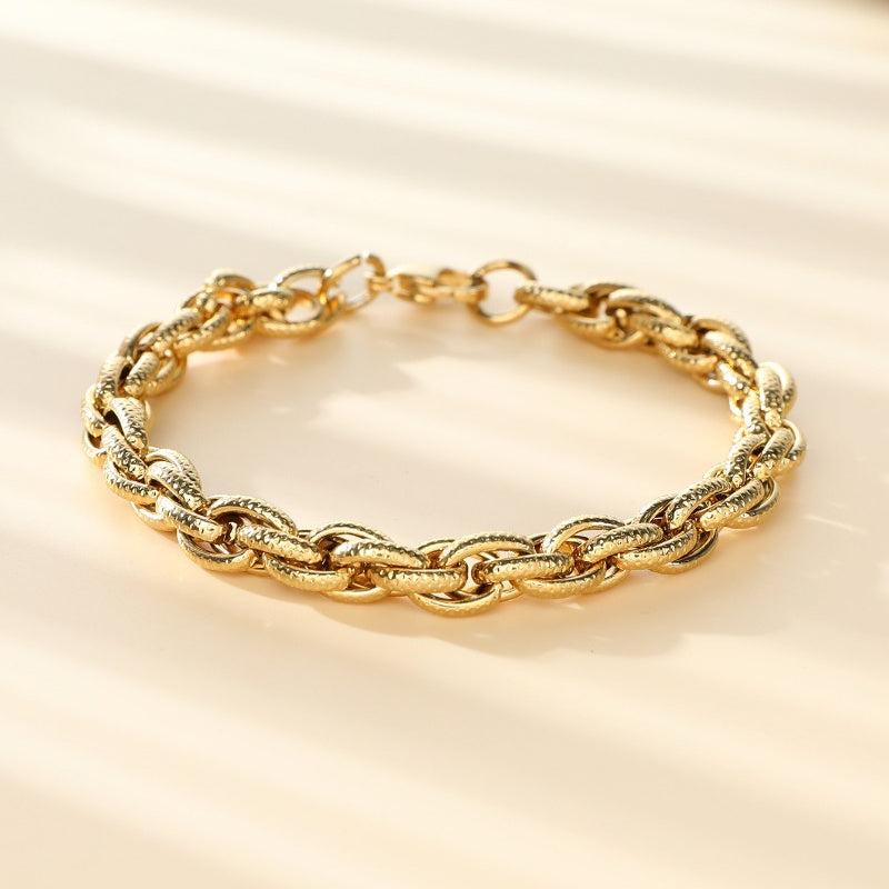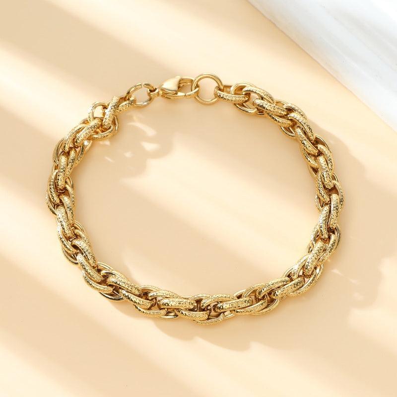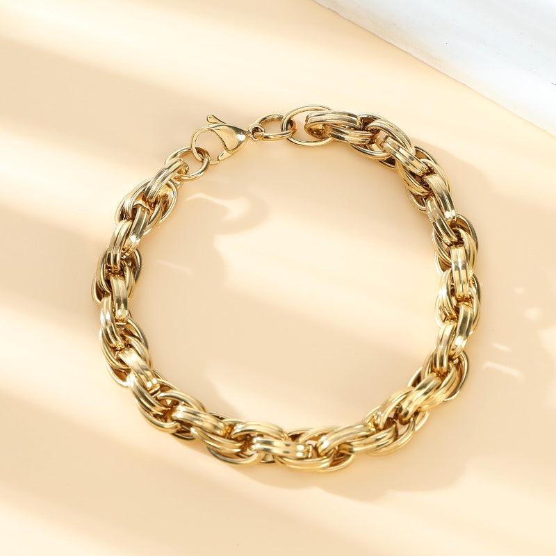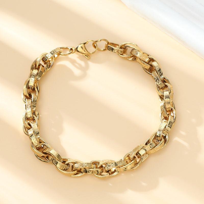 This men's bracelet features a classic chunky chain design made of plated stainless steel with a secure lobster claw clasp. It is a fashionable accessory for gentlemen.