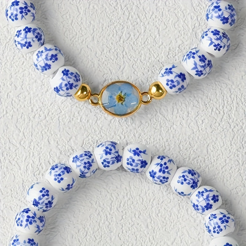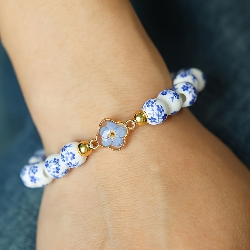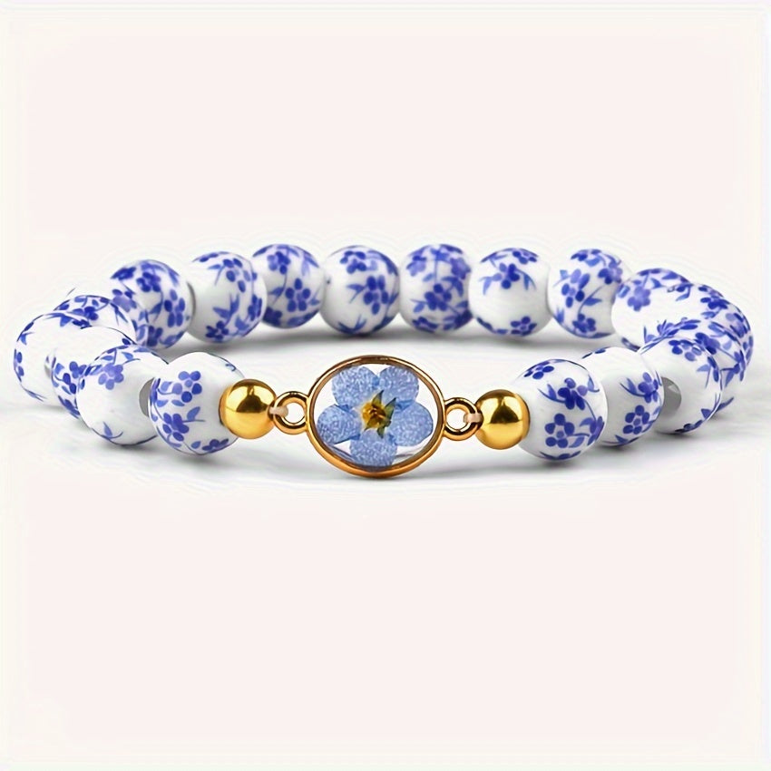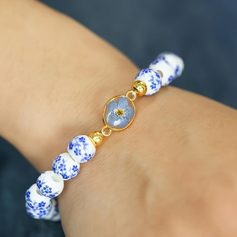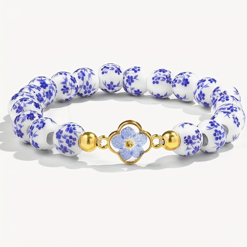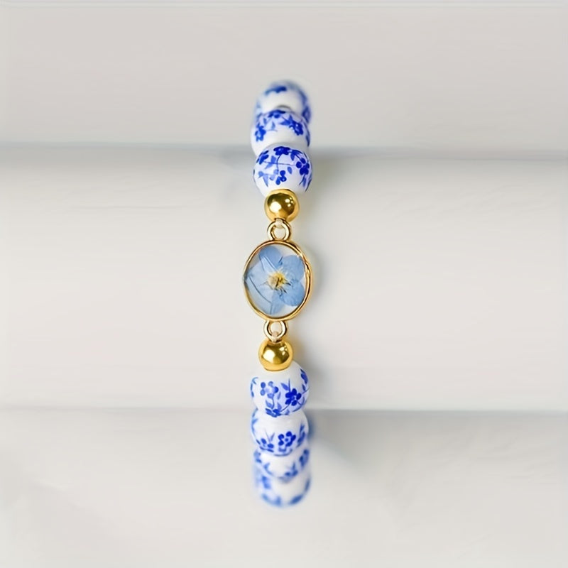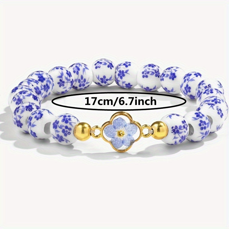 Elevate your style with this porcelain bead bracelet featuring a resin pendant. This stylish ceramic jewelry piece adds a unique touch to any outfit.