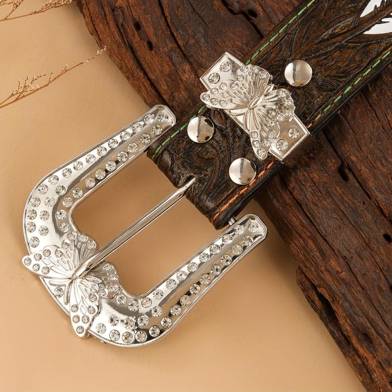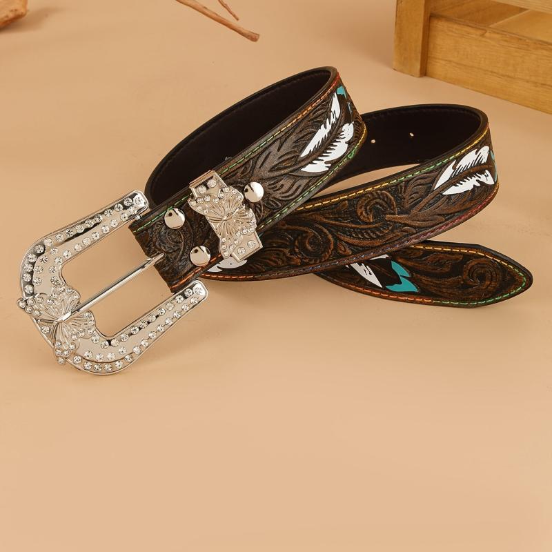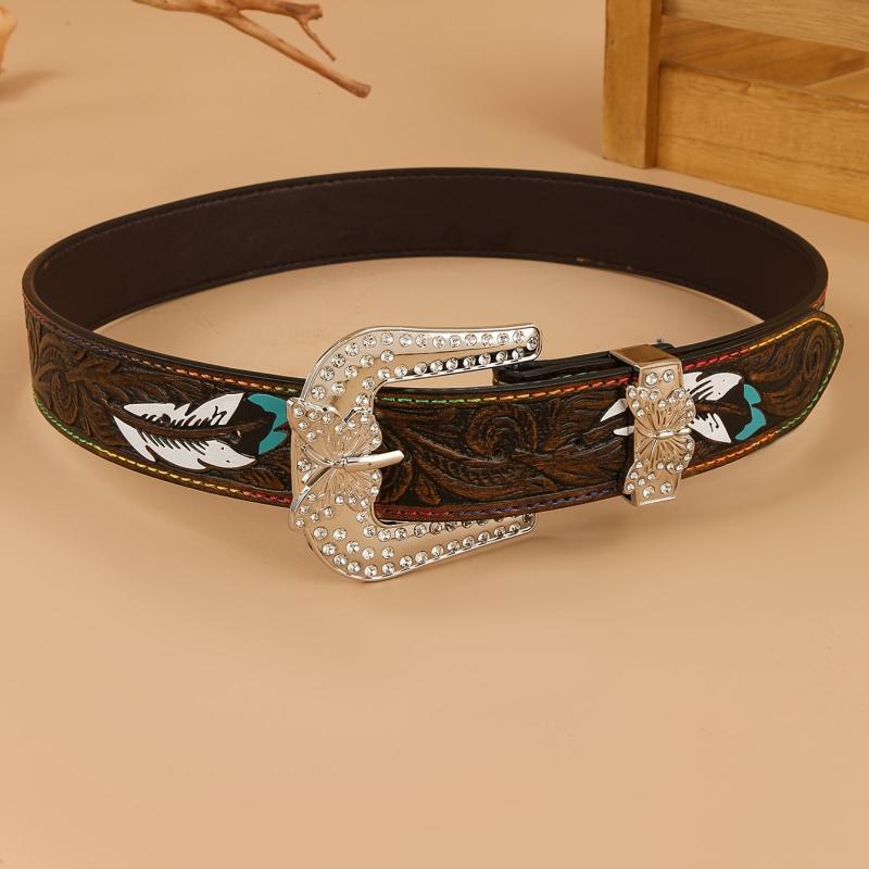 This vintage-style belt features an embossed alloy square buckle and is made of faux leather. Perfect for a punk look!