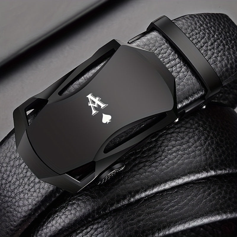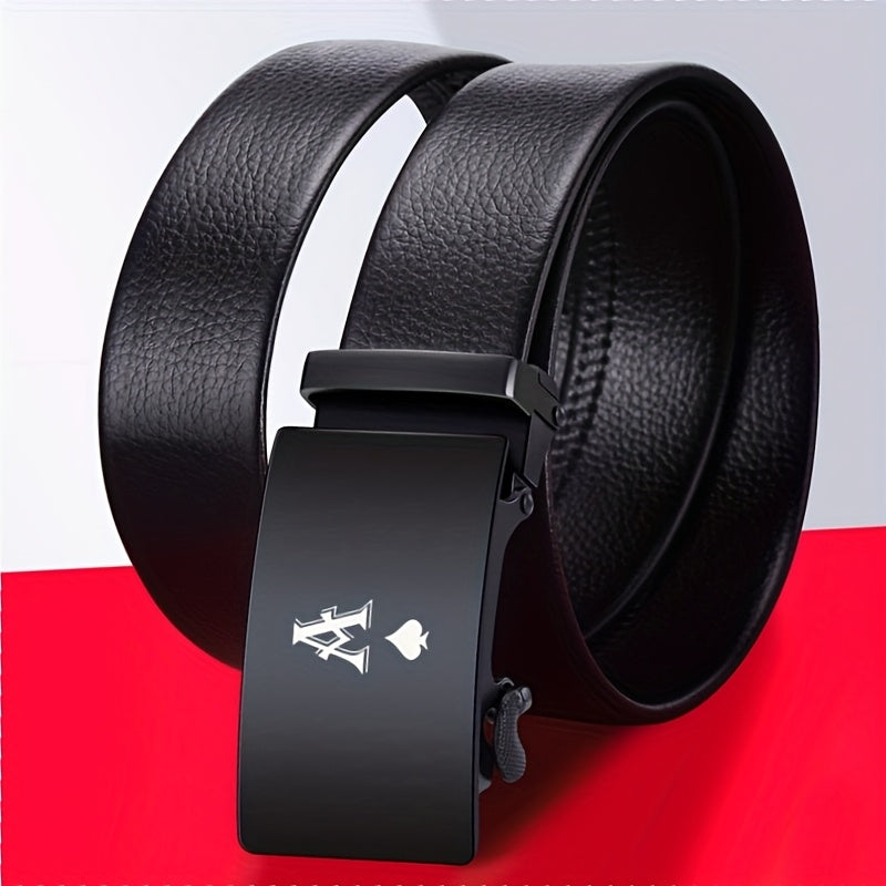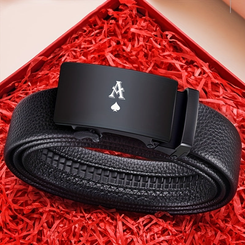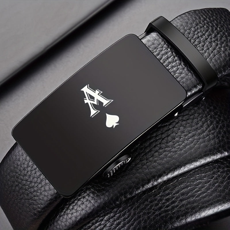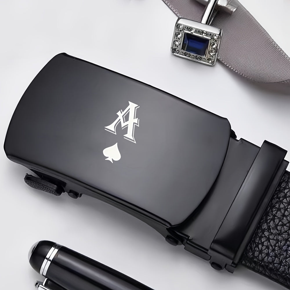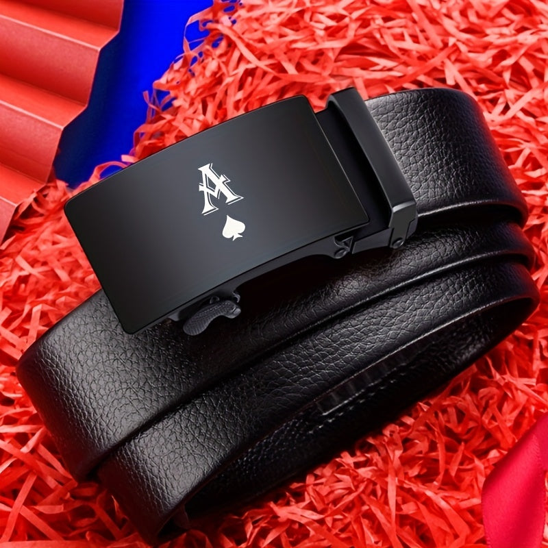 Stylish and durable PVC belt with automatic sliding buckle featuring an Ace of Spades design. Perfect for casual or formal wear, this sleek belt is golf-friendly and versatile.