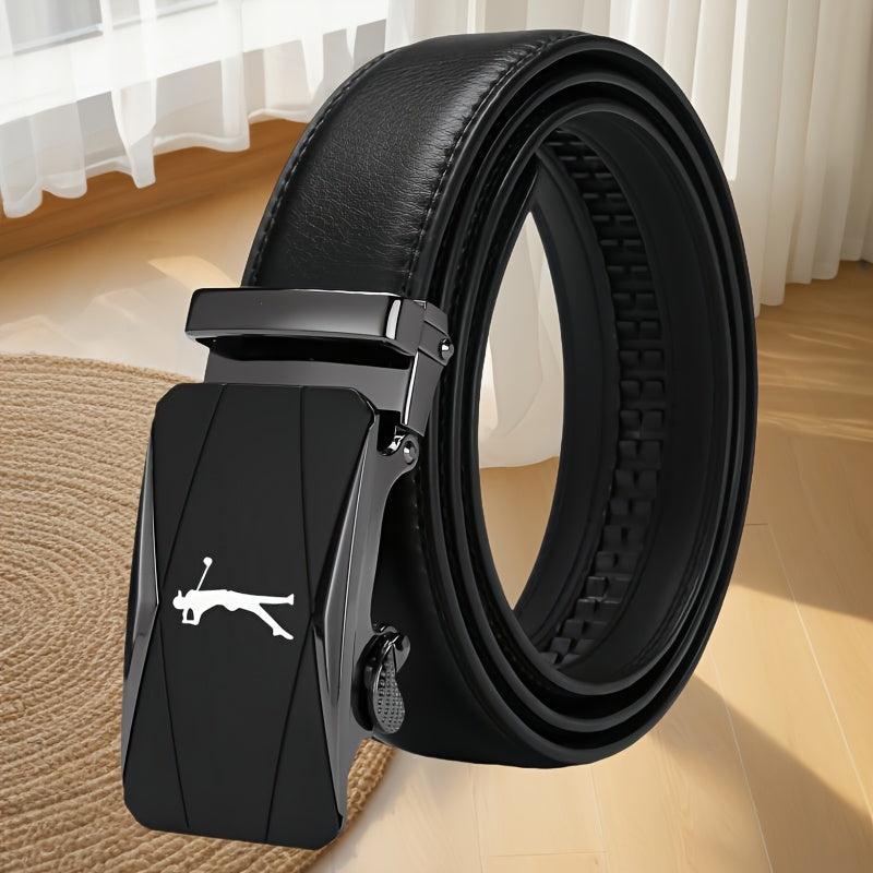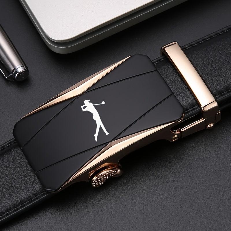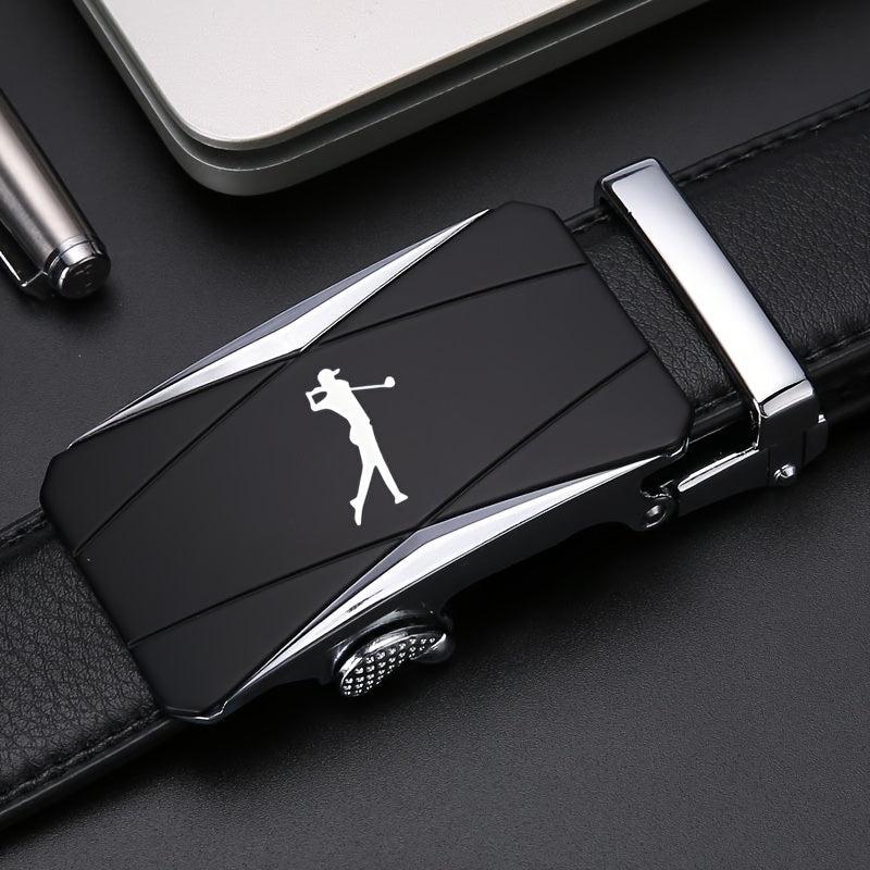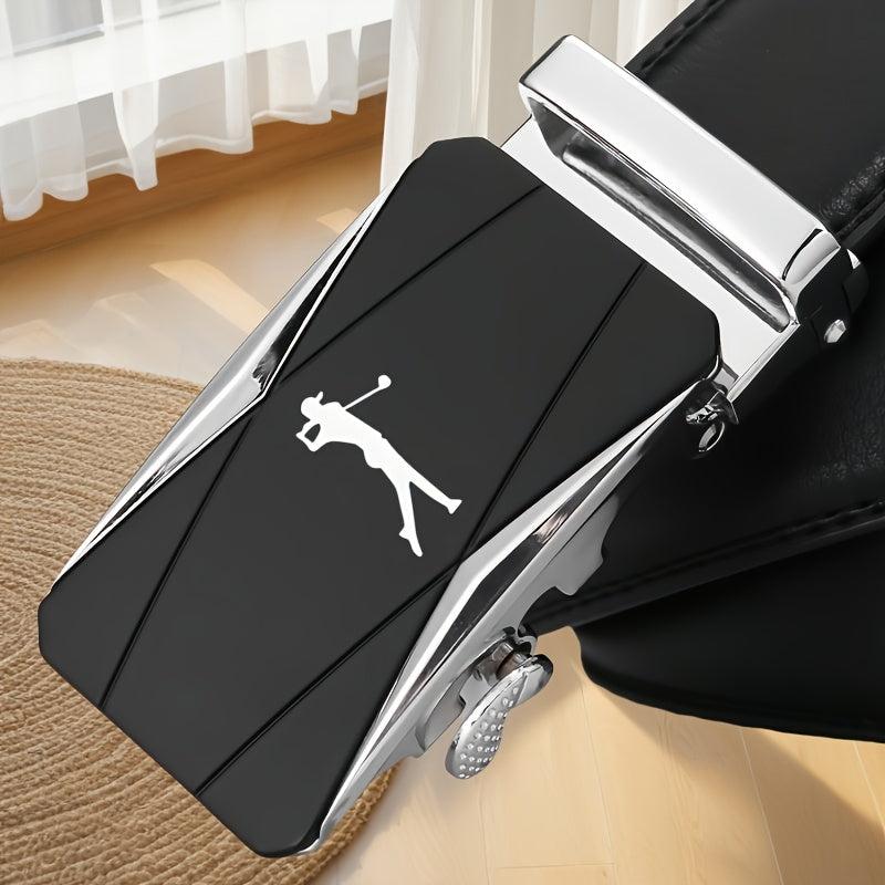 This PVC belt features a sleek business style with a golf-themed automatic alloy buckle, making it a durable and stylish accessory for both casual and formal wear. It's an ideal Christmas gift for any man.