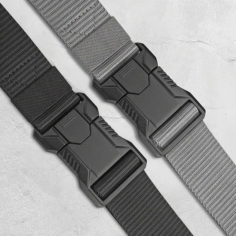 This casual men's belt is made of durable PP strap with a square plastic buckle. It is perfect for outdoor training and features a regular fit.