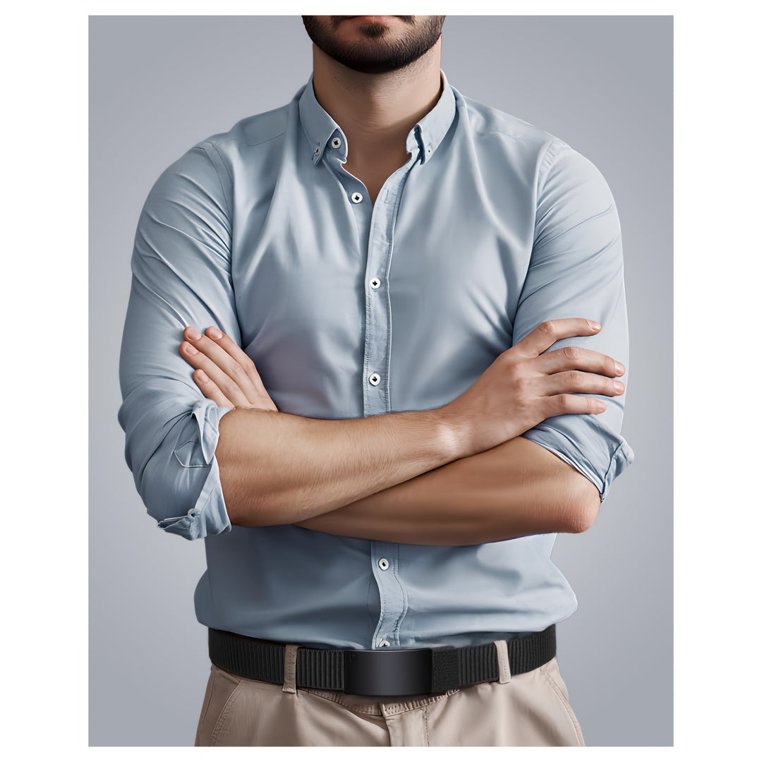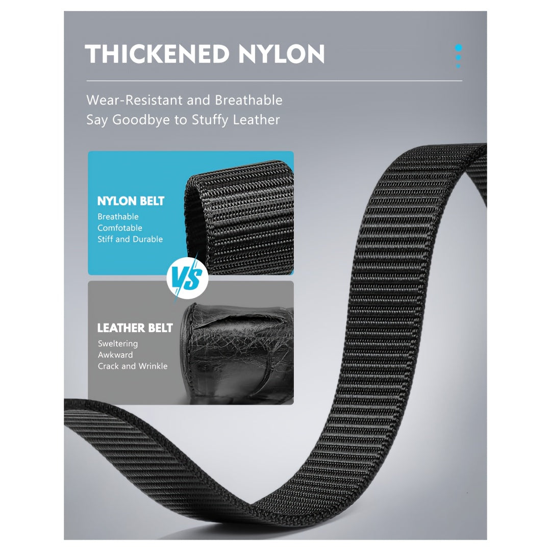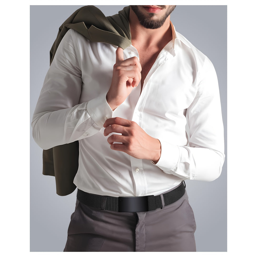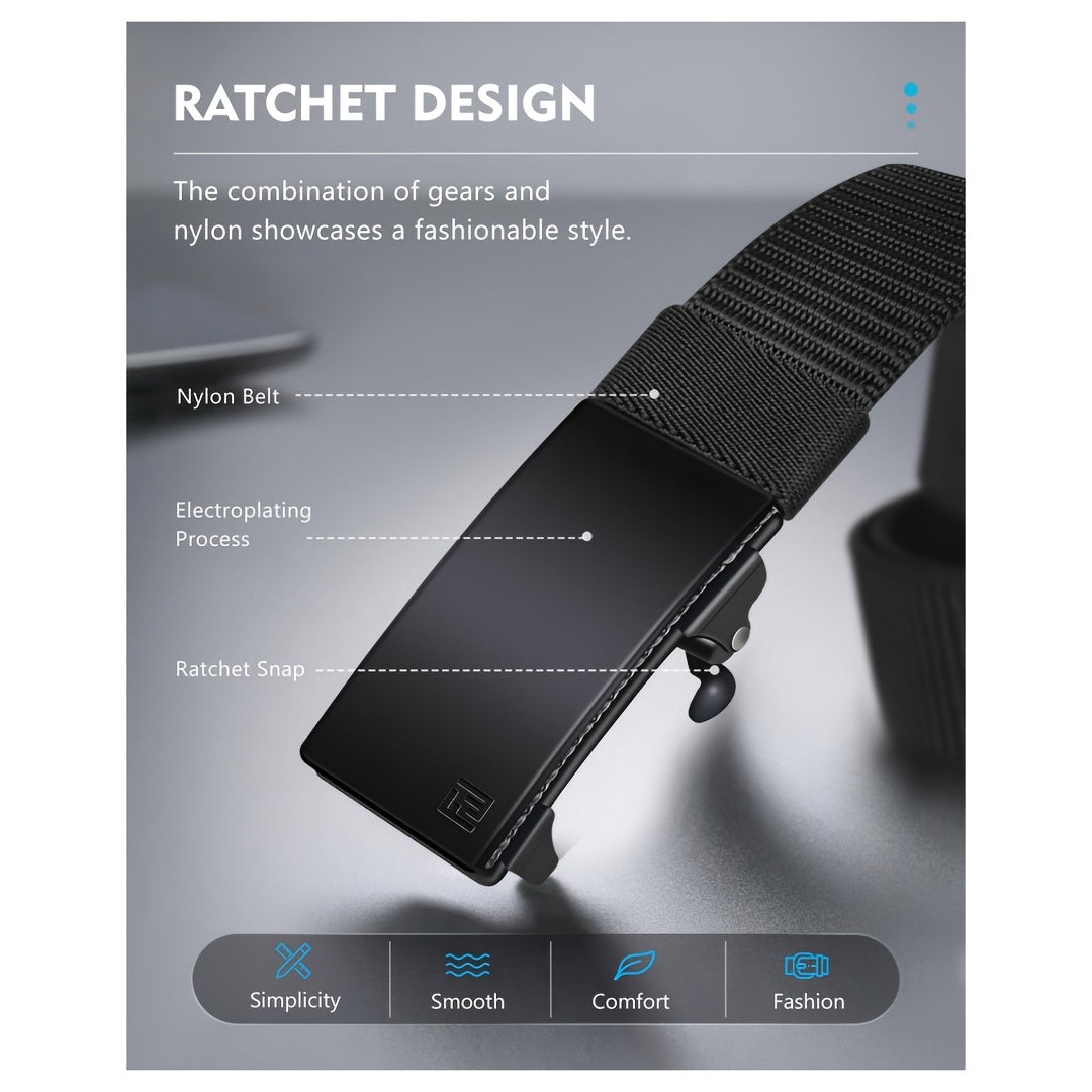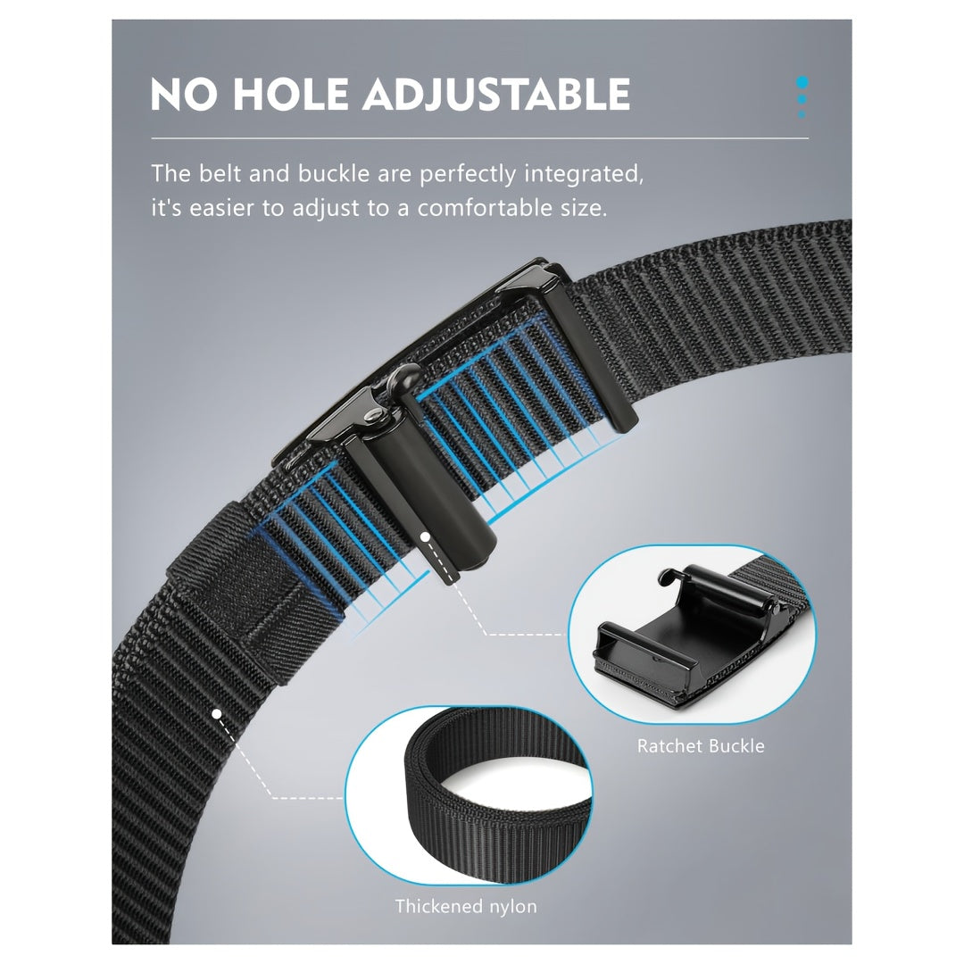 This men's ratchet web belt features an automatic buckle and no holes design, making it an invisible belt that offers a comfortable fit. The nylon material ensures durability and flexibility.