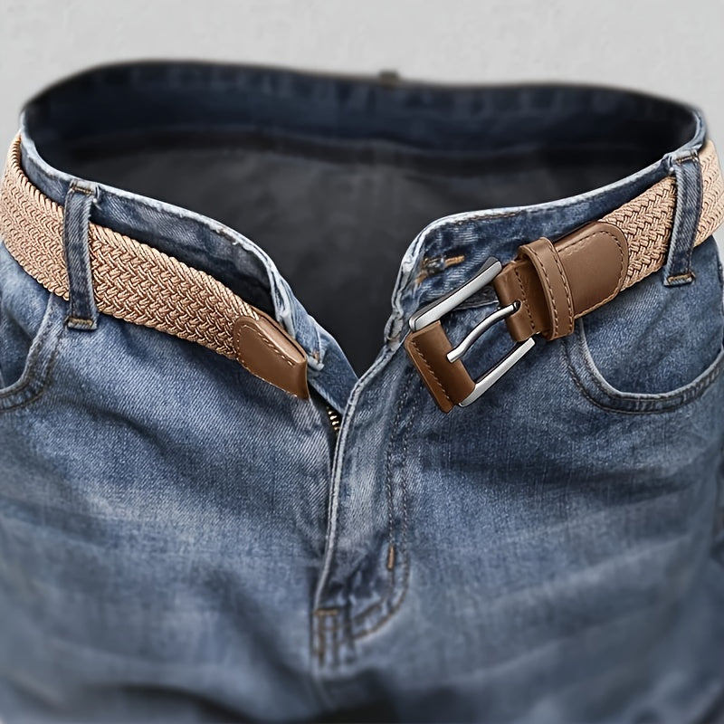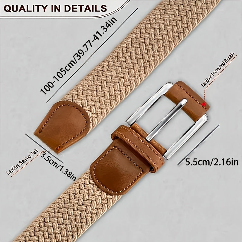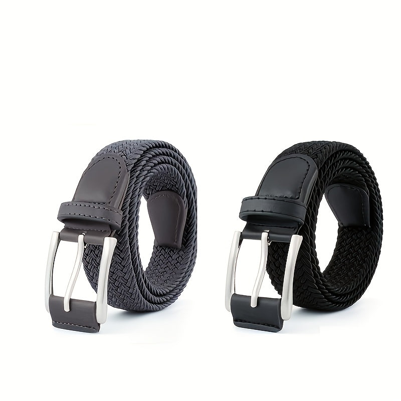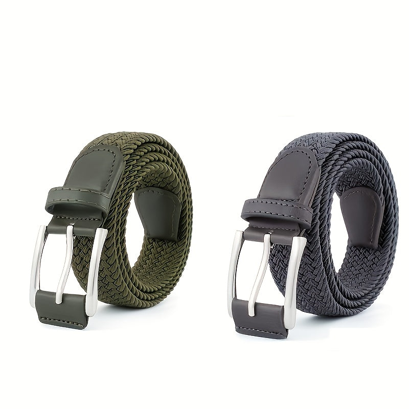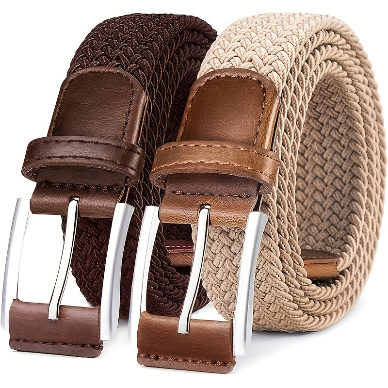 This stylish accessory features a two-piece set of durable elastic woven belts in brown with an alloy buckle. Perfect for everyday wear or special occasions.