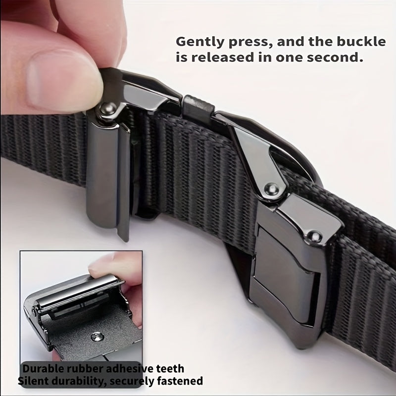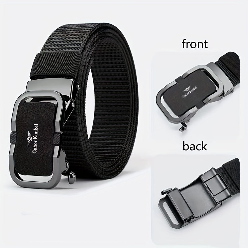 This men's tactical canvas belt features an automatic alloy buckle that adds a touch of style to your casual or business attire. It is adjustable and suitable for various activities.
