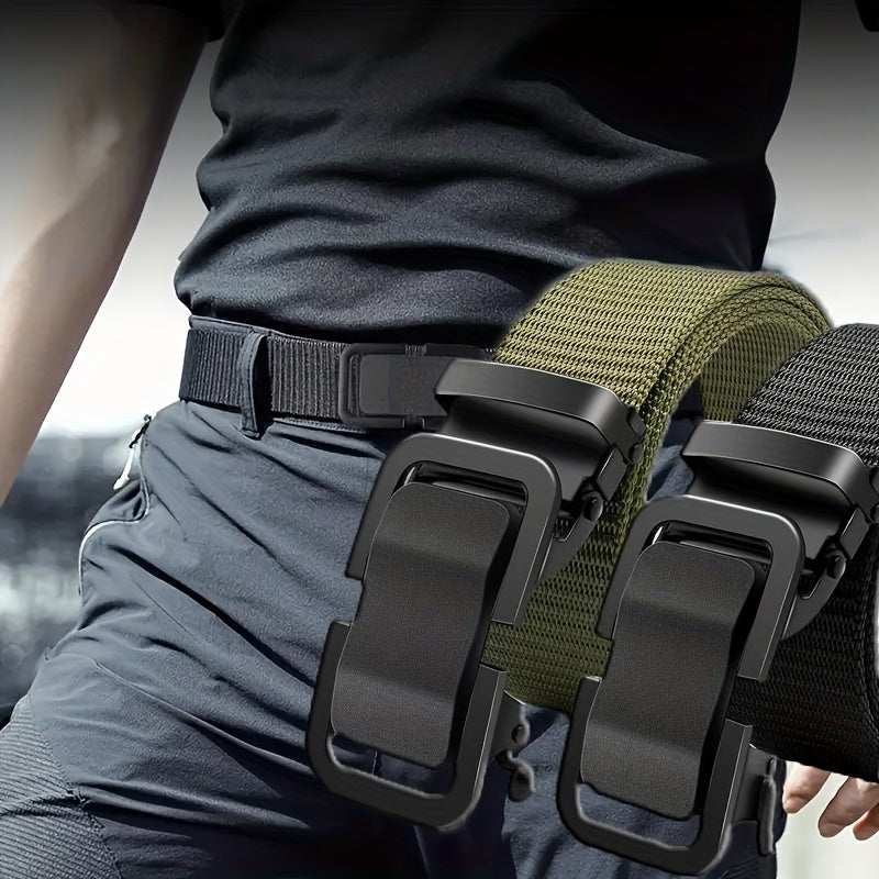 This tactical canvas belt is perfect for outdoor and casual wear. It is made with durable materials and features an automatic buckle for easy adjustment. Ideal for training and everyday use.