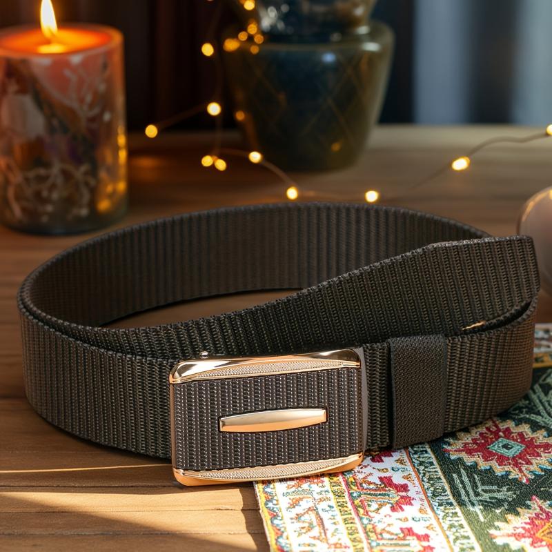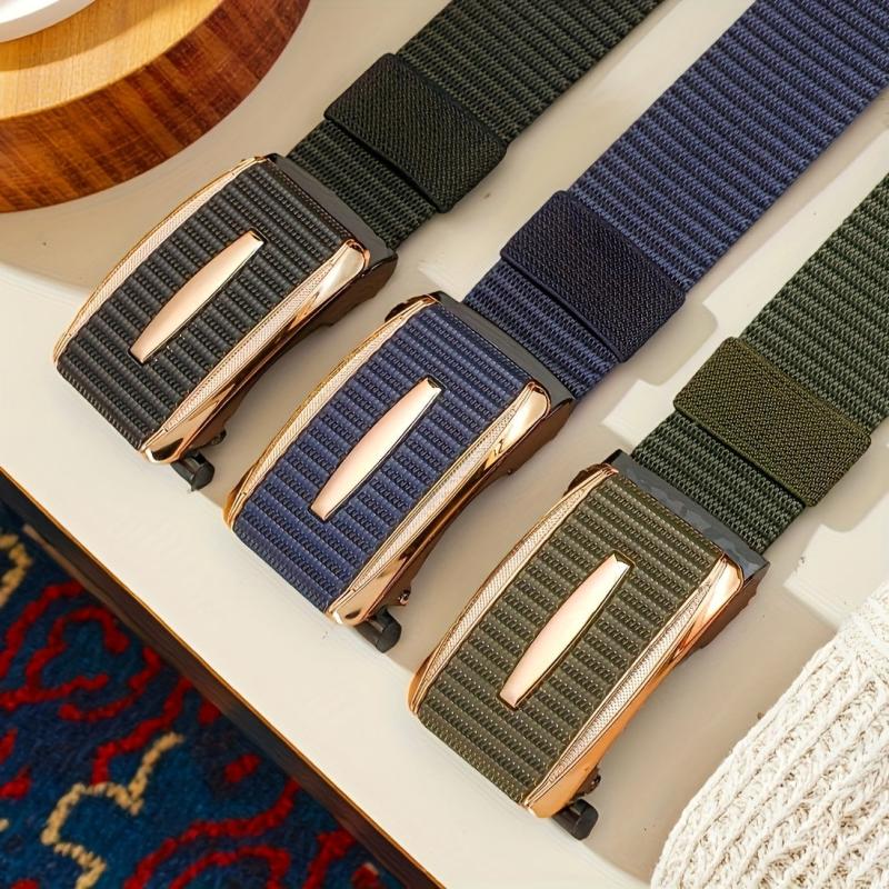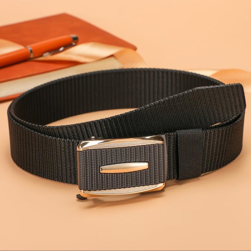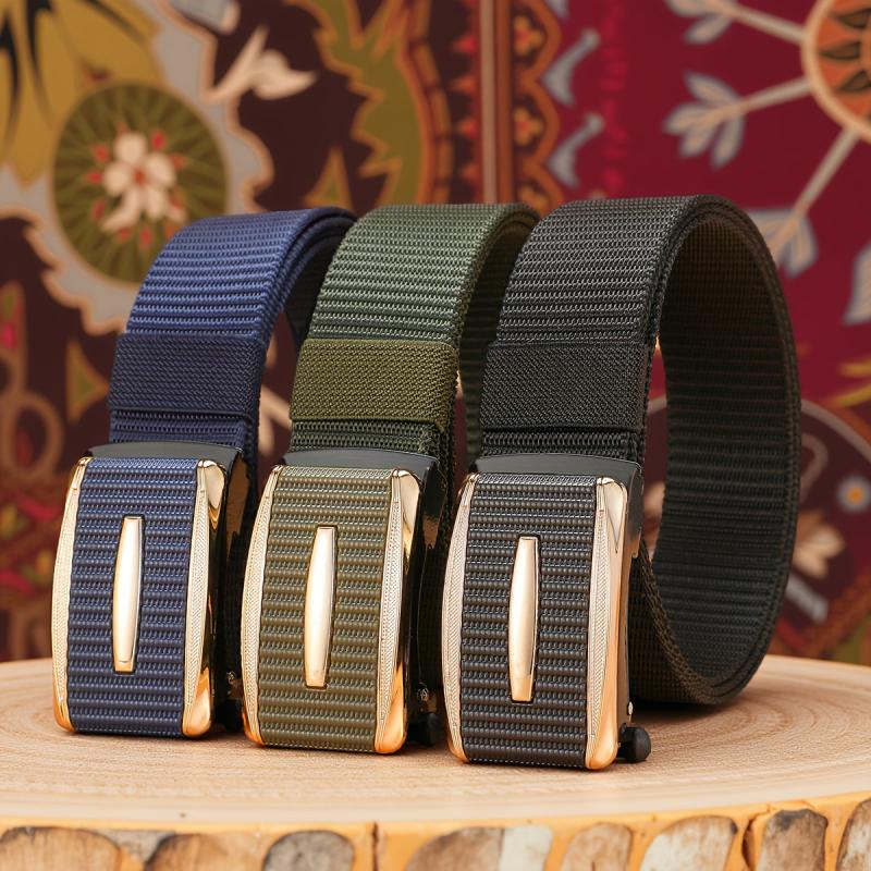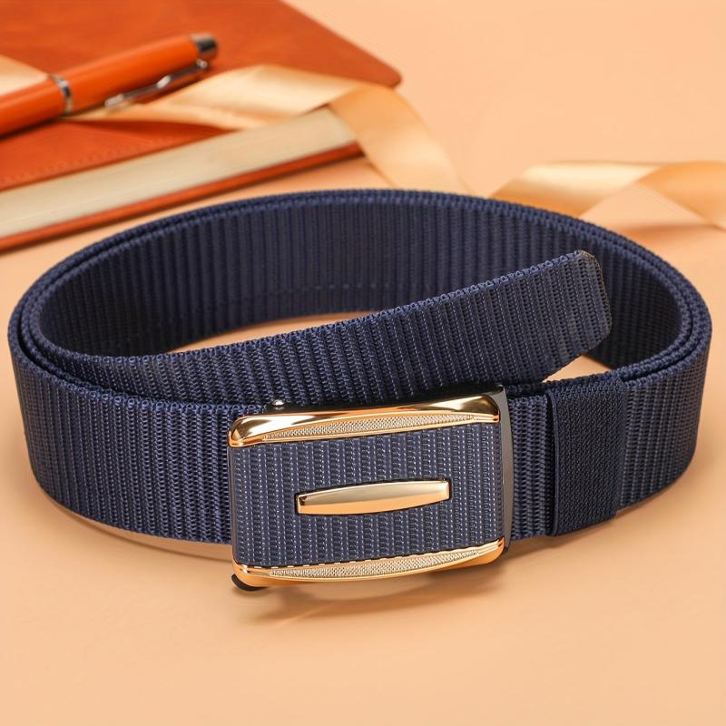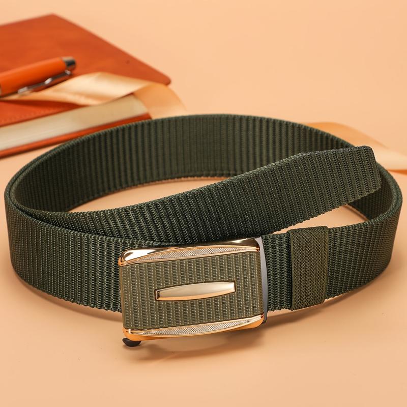 This men's tactical nylon belt is perfect for casual jeans, outdoor sports, and daily commuting. Made with durable material and features an automatic buckle for easy adjustments. Available in navy and olive green.