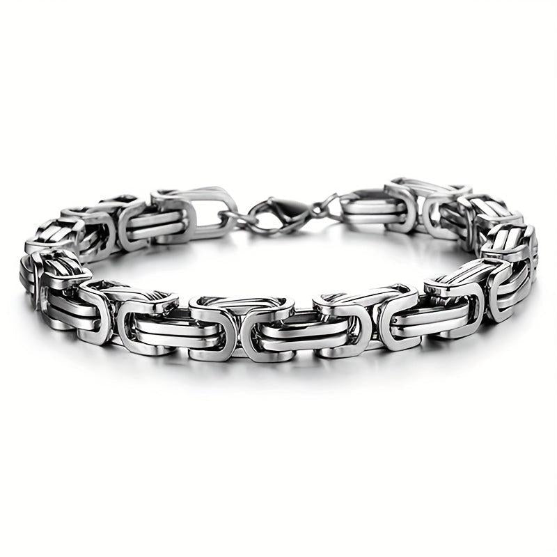 This sleek men's bracelet is made of silvery titanium steel, perfect for a modern and stylish look.