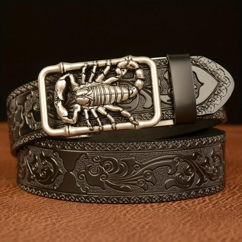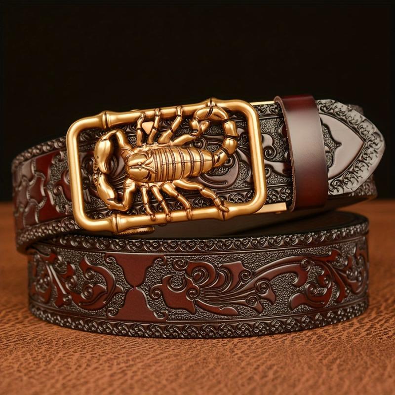 This stylish belt features intricate carvings on genuine cowhide leather. Perfect for casual or jeans wear, ideal as a gift for your husband.