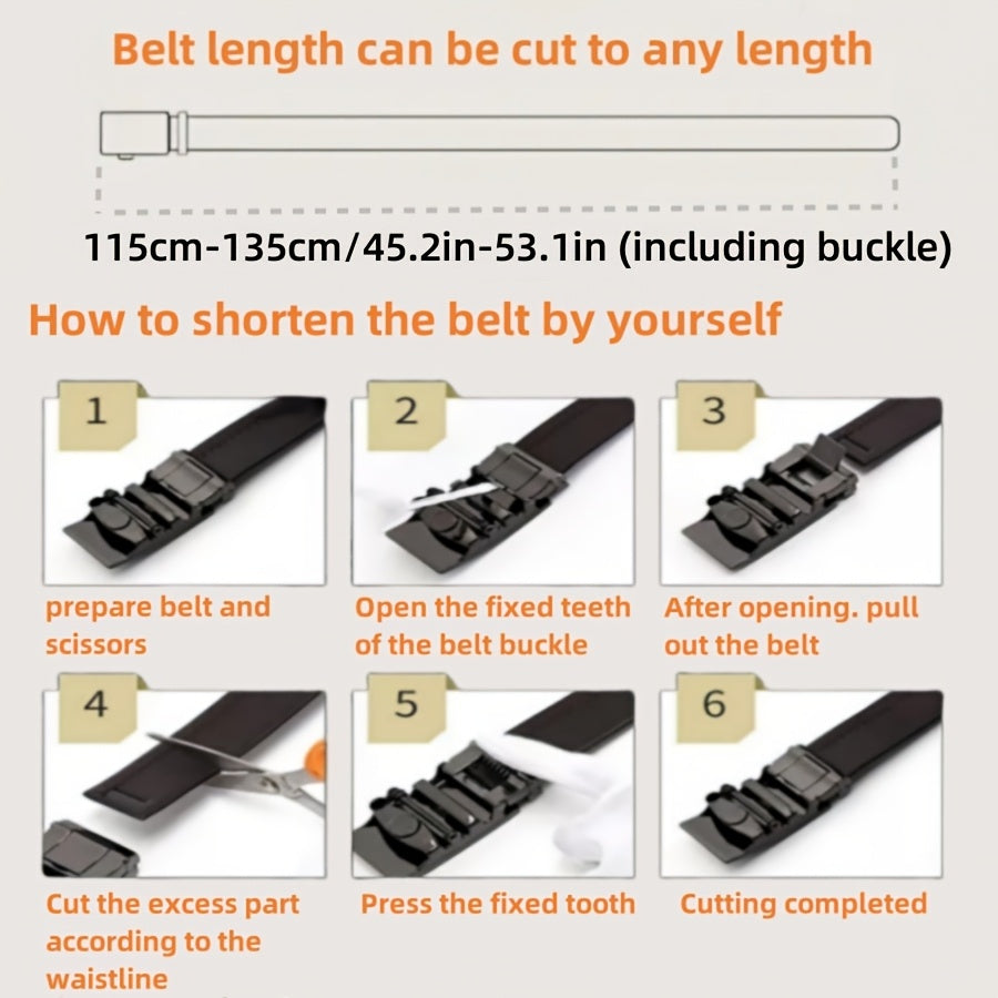 Get ready for any occasion with this stylish men's belt. Made of high-quality leather with an automatic buckle, perfect for casual wear or special events. Makes a great gift for your husband or father!