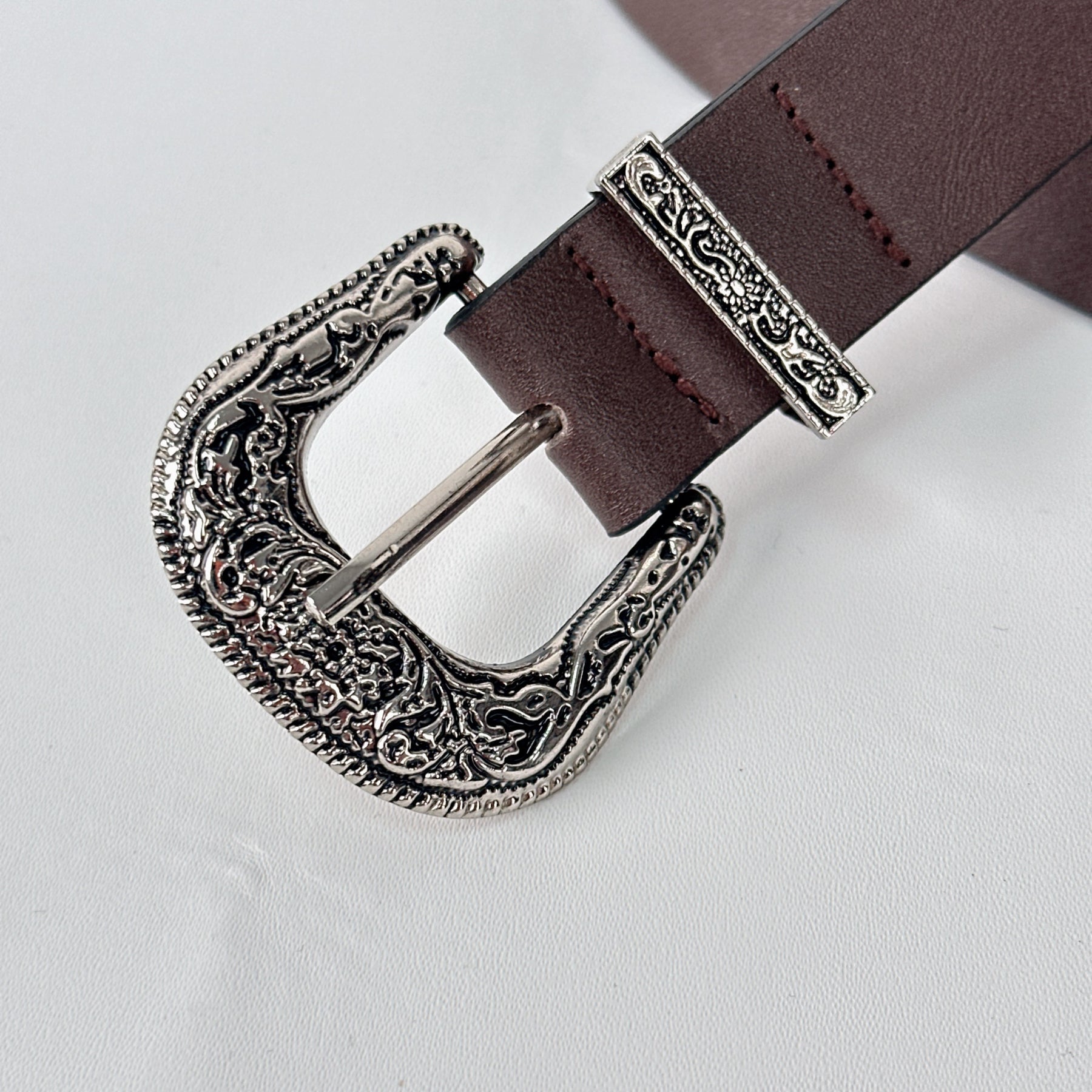 Add a touch of retro charm to your outfit with this vintage-style belt made of faux leather. Perfect for daily wear and sports activities.