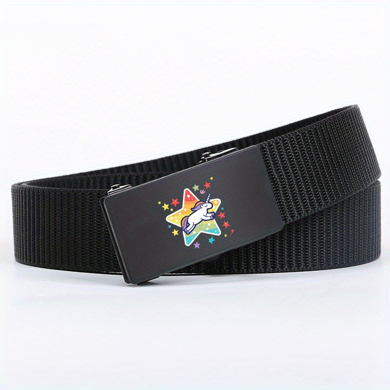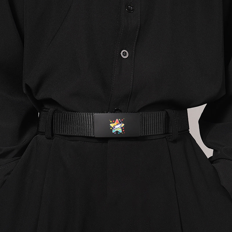 Men's Woven Automatic Buckle Belt with Starry Beast Fabric