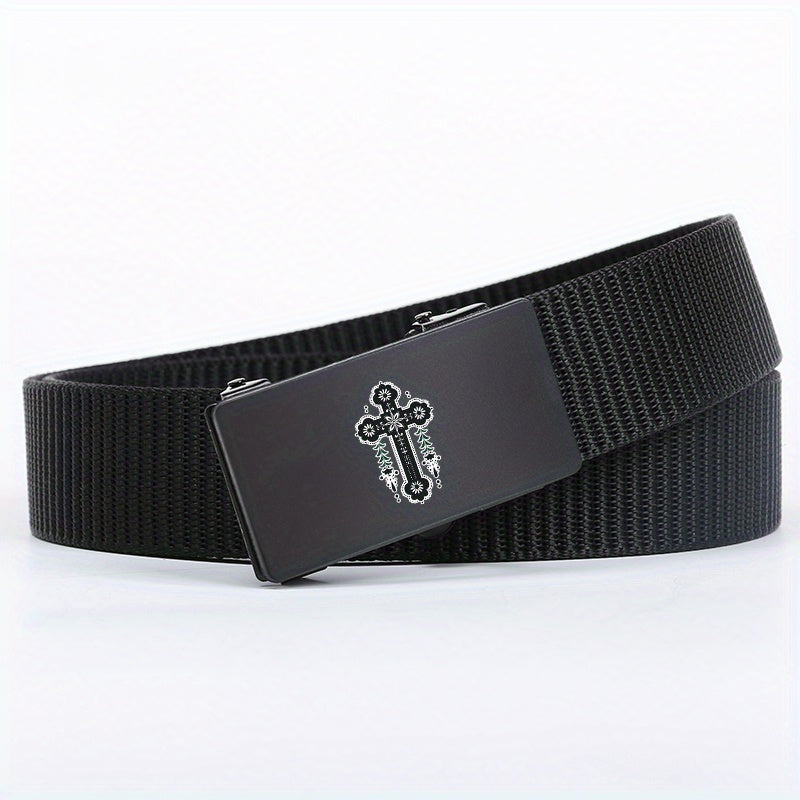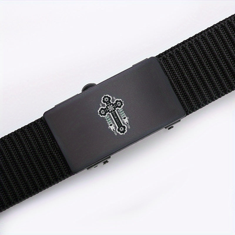 This stylish woven belt with automatic alloy cross buckle is perfect for casual and business attire. It makes for a great gift or everyday accessory.