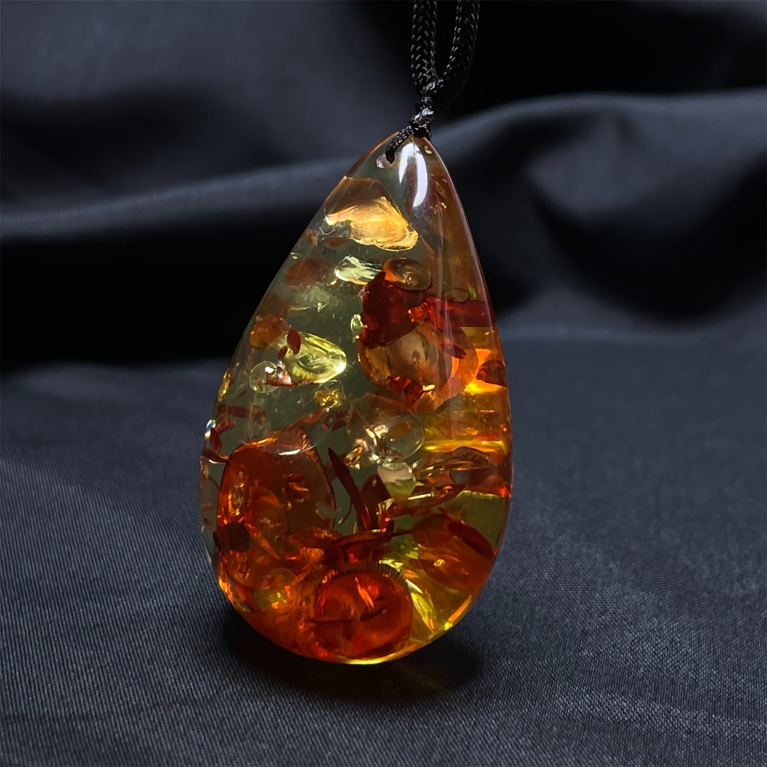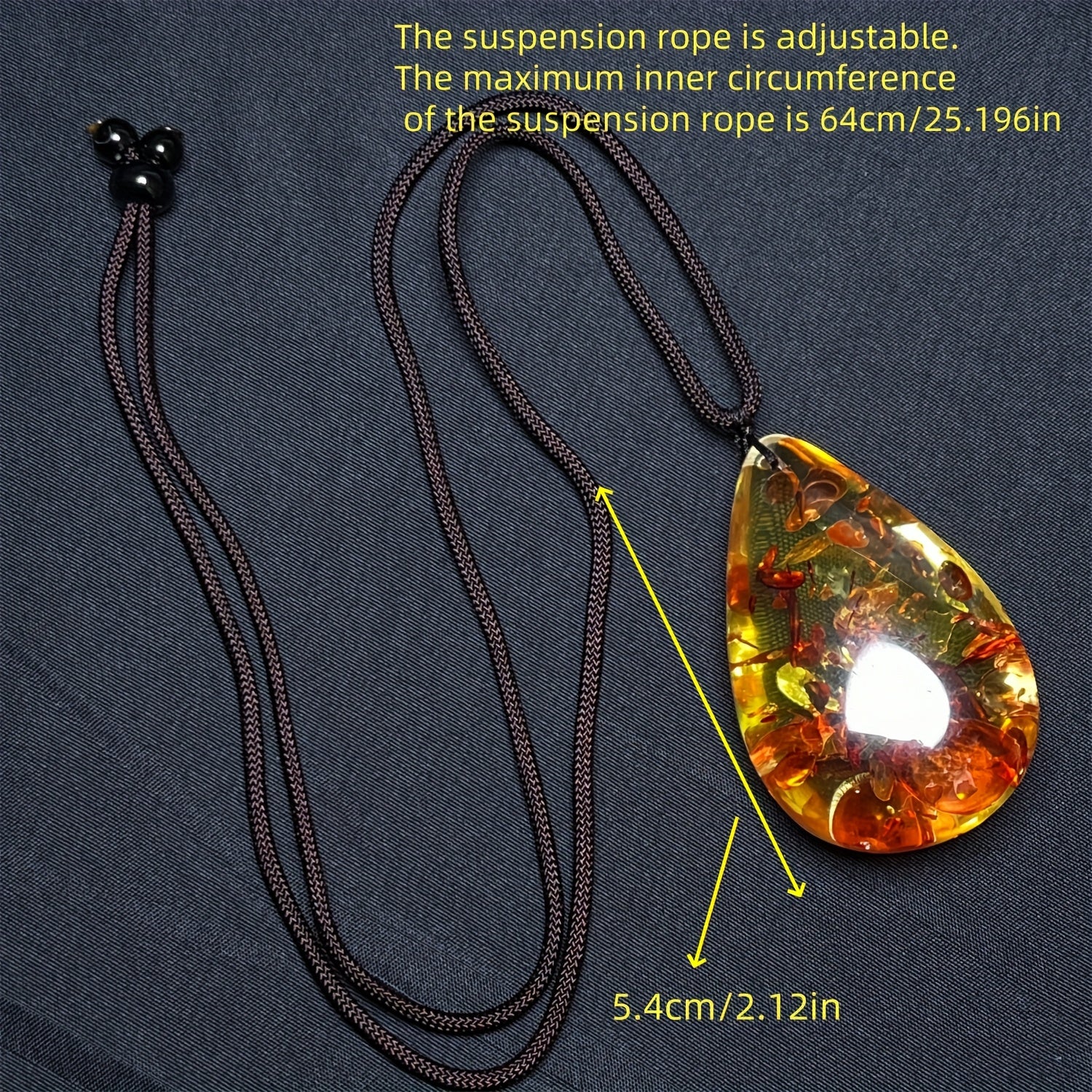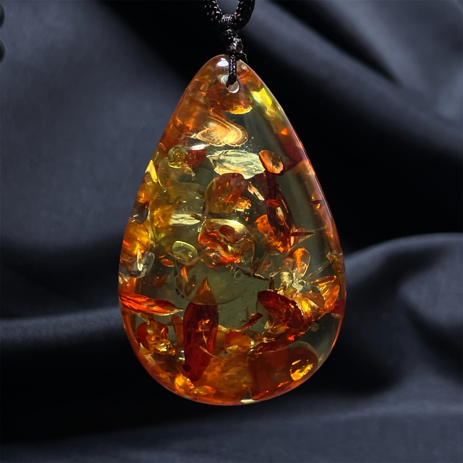 Add a touch of funk to your casual attire with this vibrant teardrop necklace featuring a blend of orange and yellow hues. The pendant is made from natural resin and hangs elegantly on a matching cord. Perfect for everyday wear.