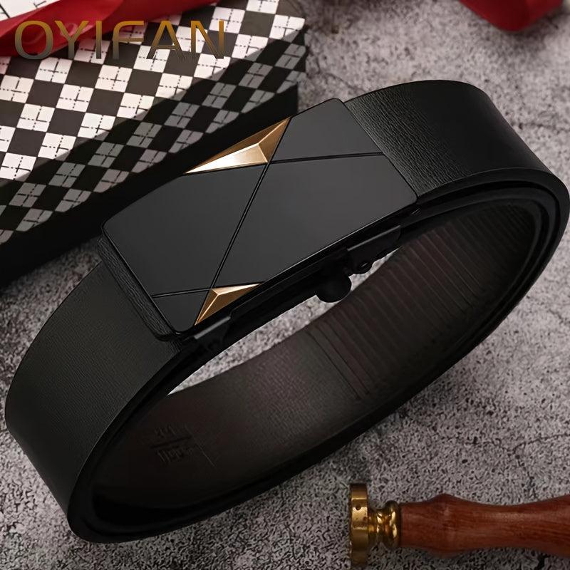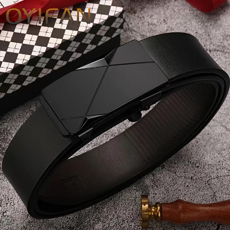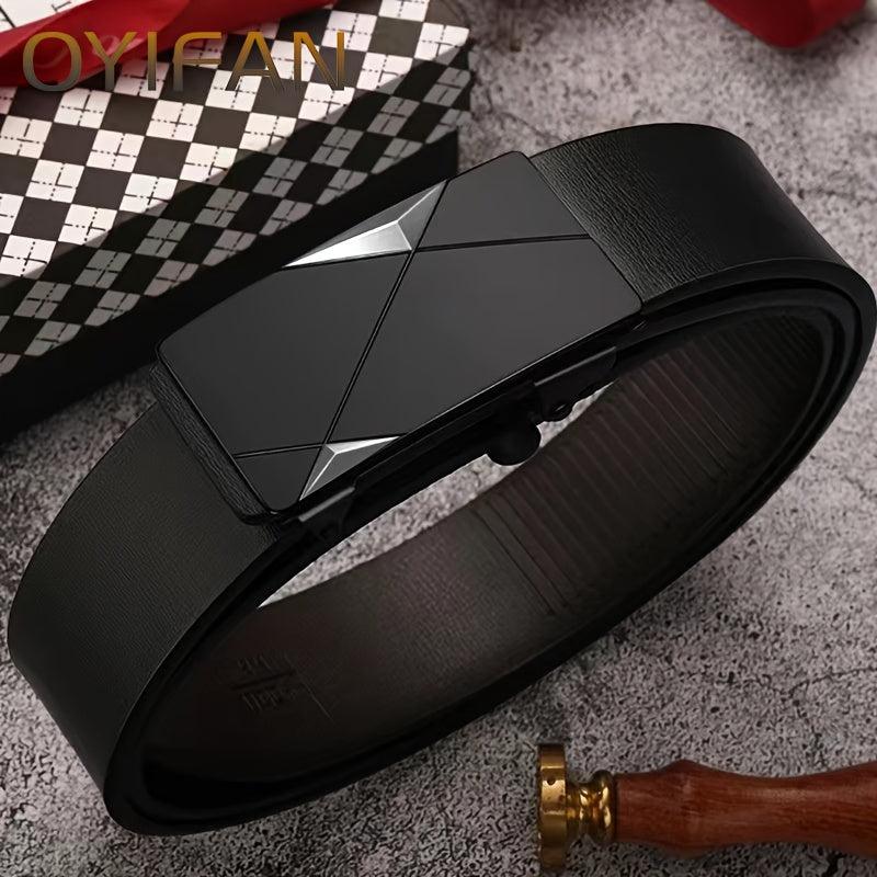 Premium quality second layer cow leather belt for men with durable automatic alloy buckle. Designed for style and longevity.