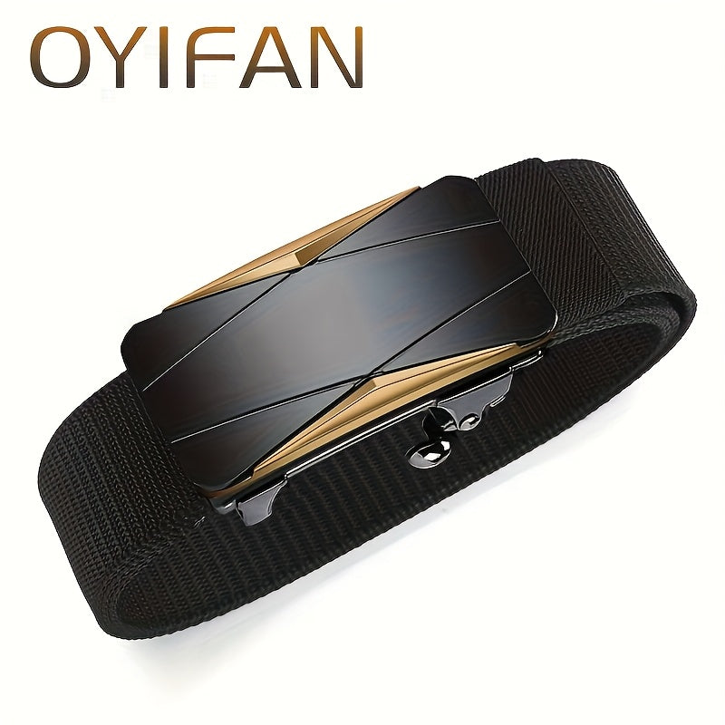 This fashionable tactical belt from OYIFAN features a full-size large design made of durable nylon material. It includes a padded body for added comfort and an alloy automatic buckle that is adjustable for a perfect fit. Hand wash or have it professionally dry cleaned for easy maintenance.
