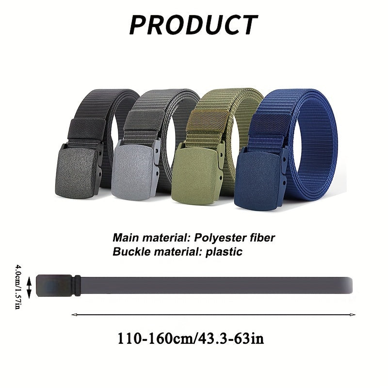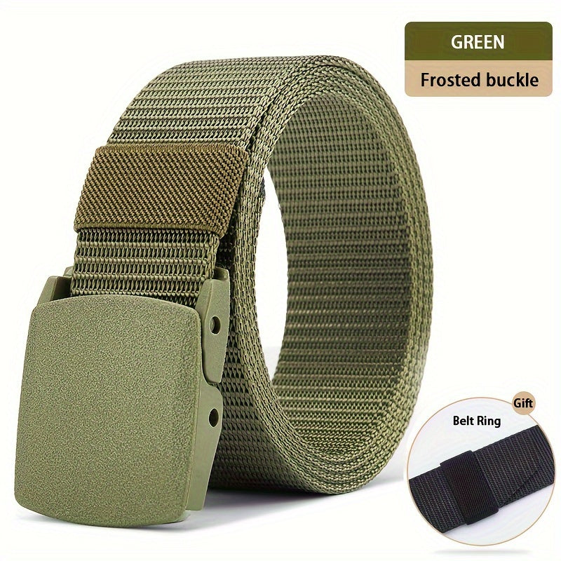 Upgrade your military-inspired look with this durable green belt featuring an automatic plastic buckle. Perfect for a variety of outfits and occasions.