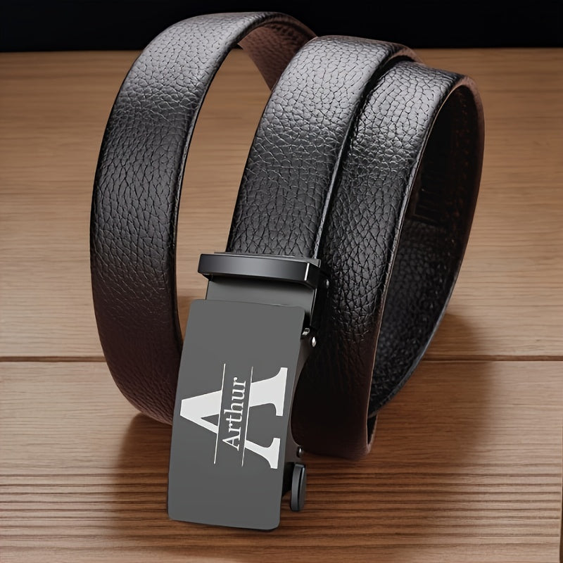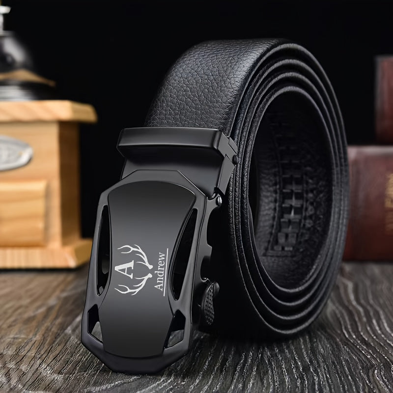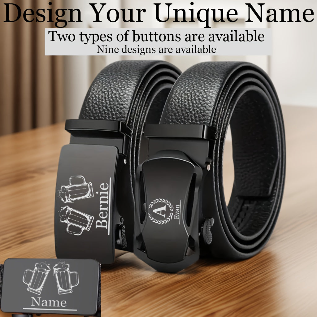 Customize this faux leather belt with laser engraved name and beer mug design. Perfect gift for Father's Day, Valentine's, Graduation, Anniversaries, and more.