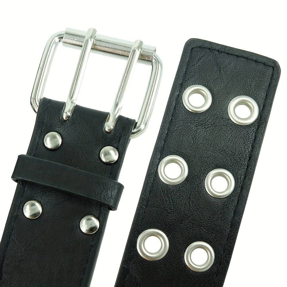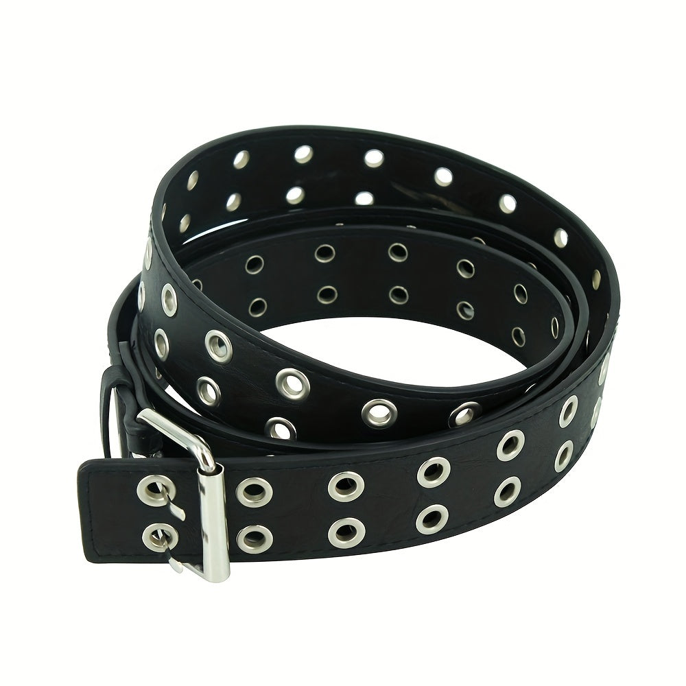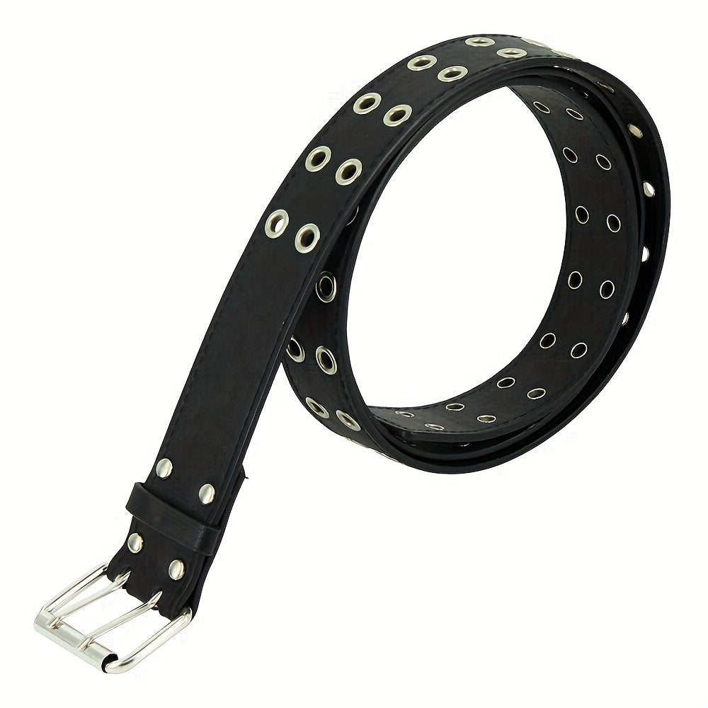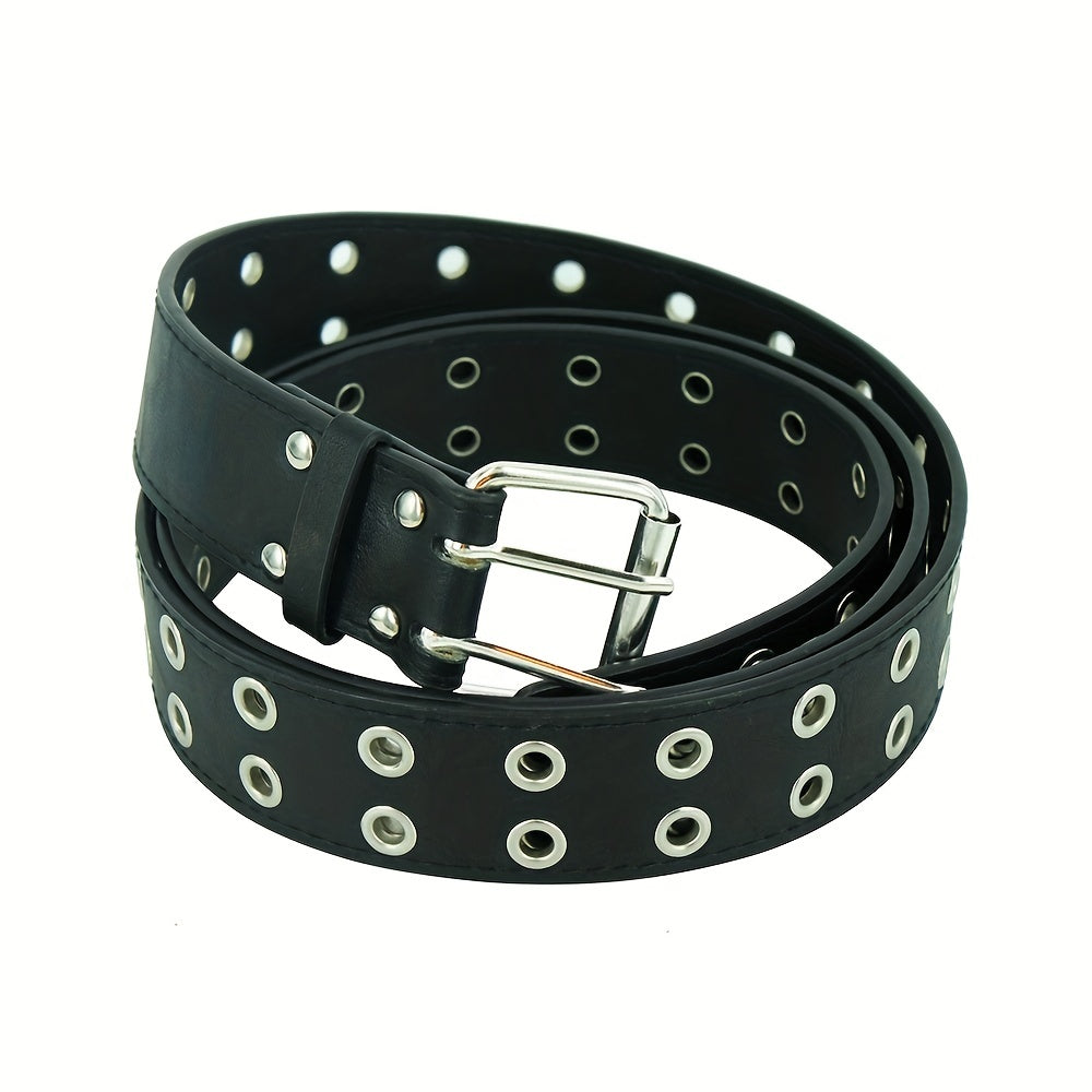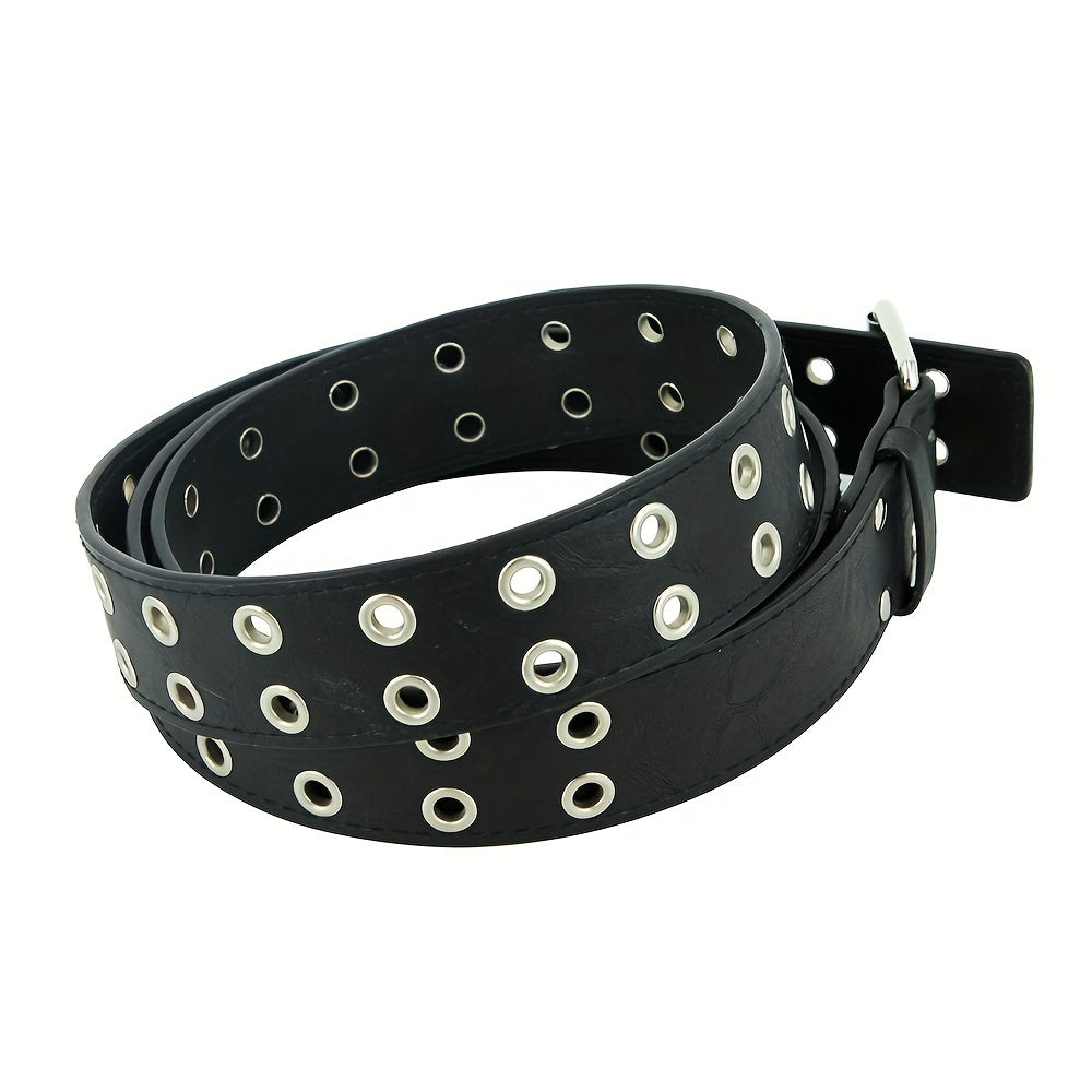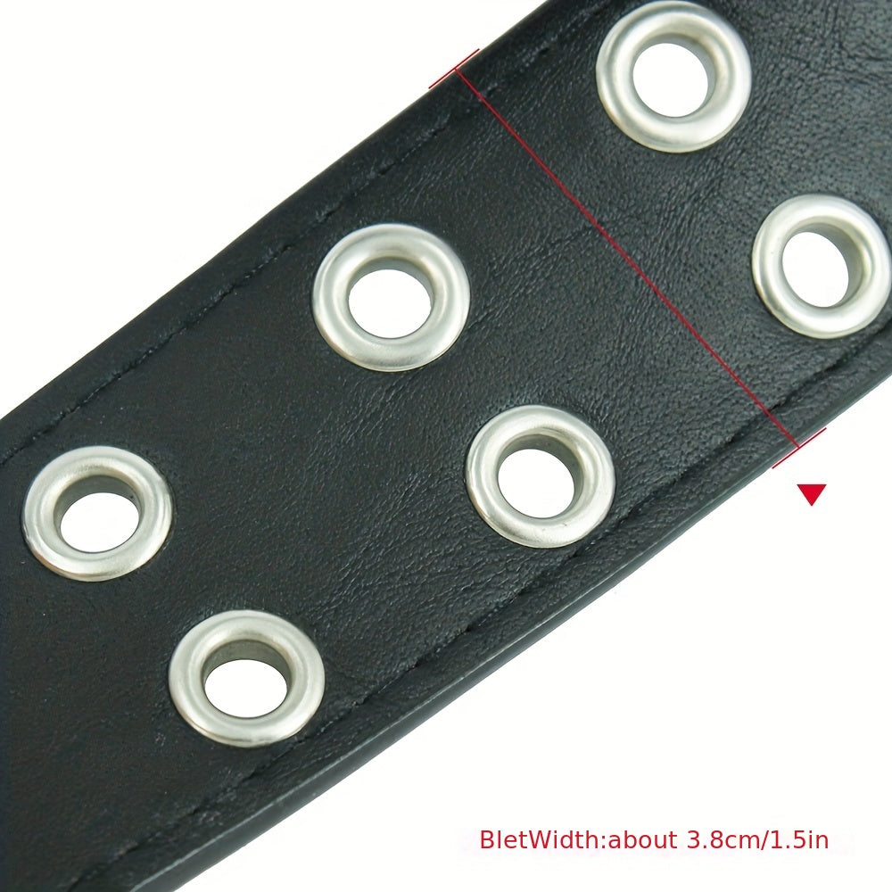 This punk chain belt is adjustable and made of leather, suitable for men's jeans. The double and single eyelet grommet design gives it a unique look.