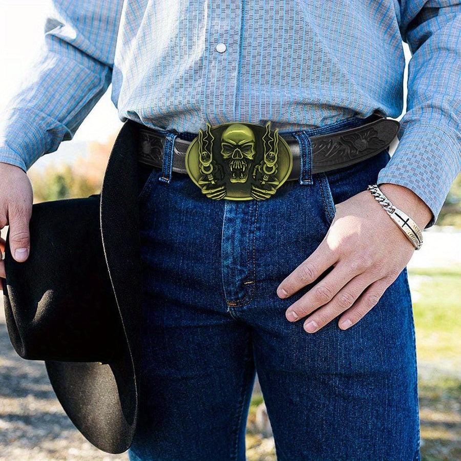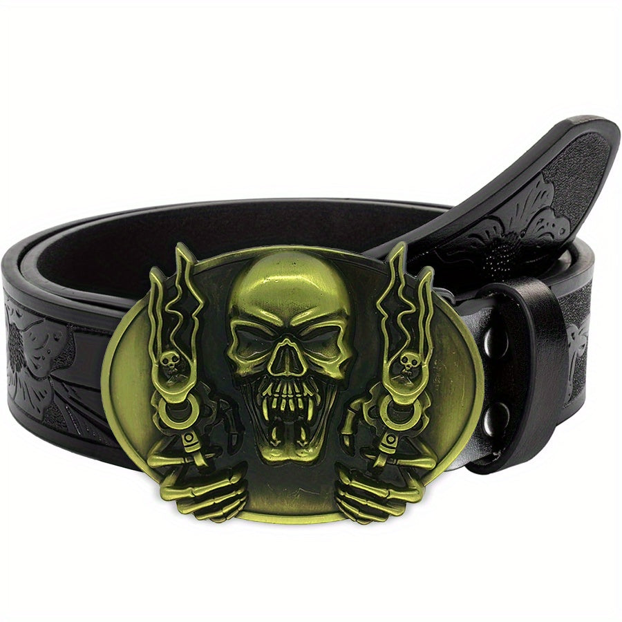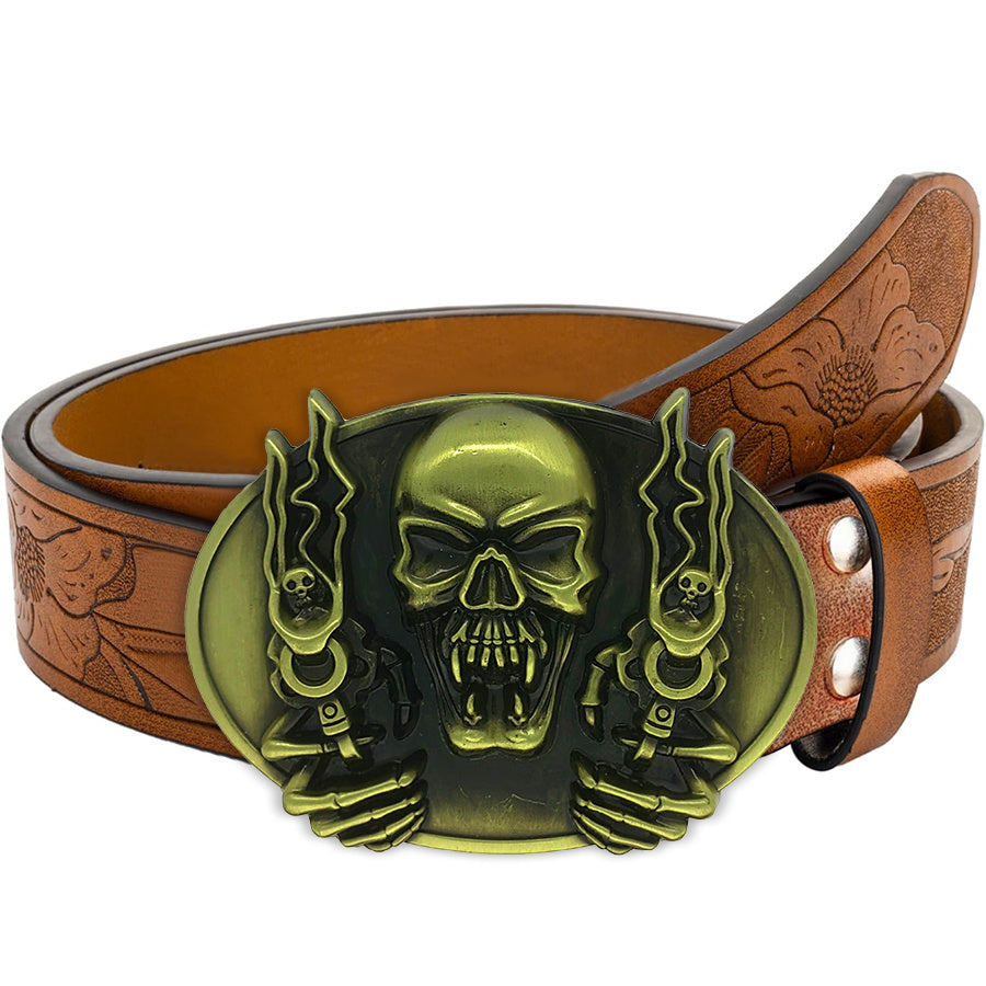 Unisex belt with irregular pattern, carved floral horn bull head, smooth buckle. Perfect for a rock style with jeans.