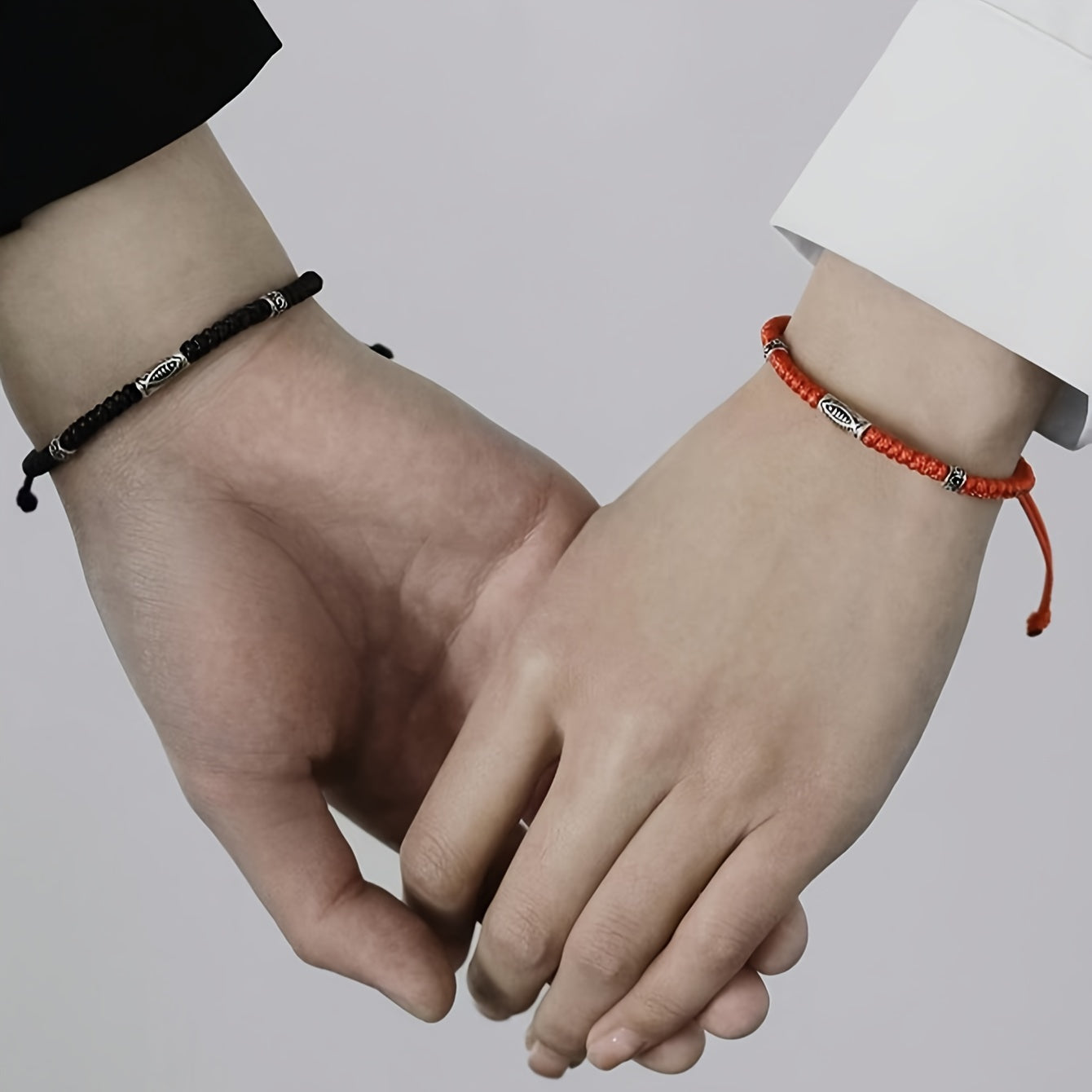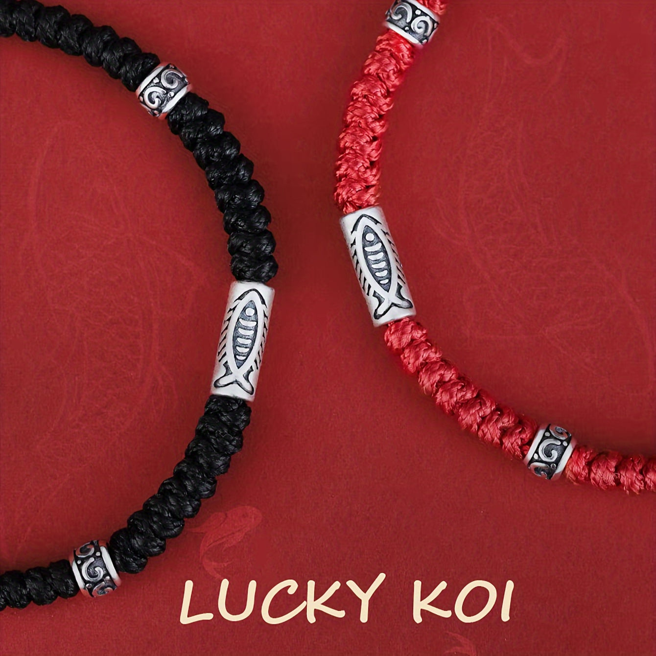 This red rope braided bracelet features a lucky koi design, perfect for couples looking to showcase their bond. Great for women and men alike.