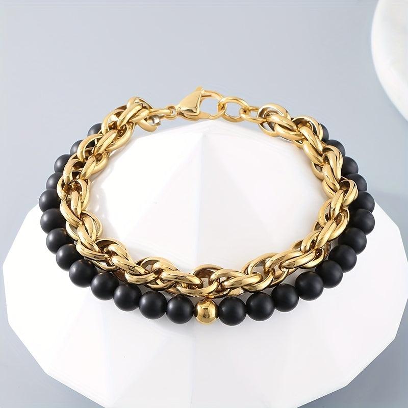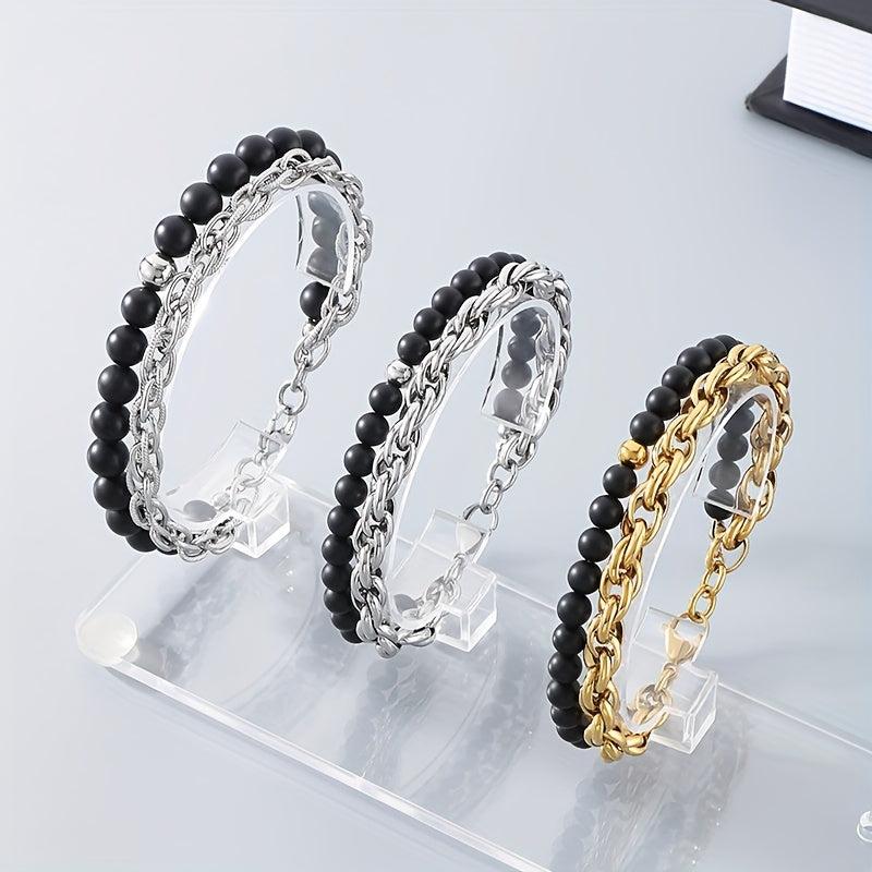 This retro twist bracelet is made of titanium steel with agate accents, perfect for men and women. It's a great birthday gift for someone special.
