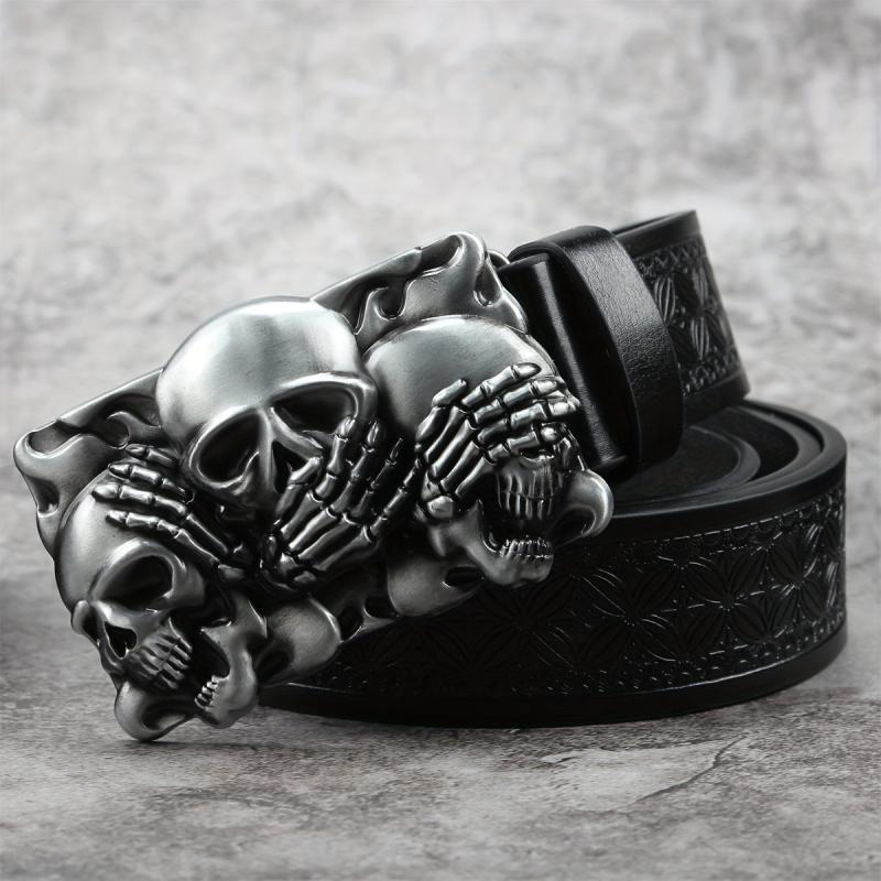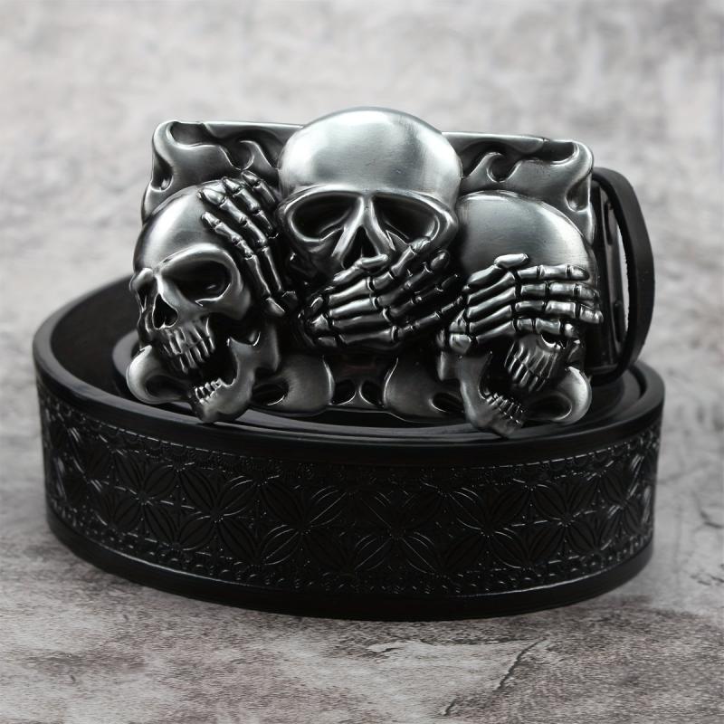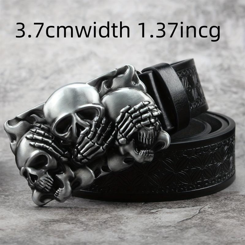 Add a touch of vintage style to your outfit with this faux leather belt featuring a unique retro skull buckle. Perfect for men and women, this versatile accessory is both stylish and functional.