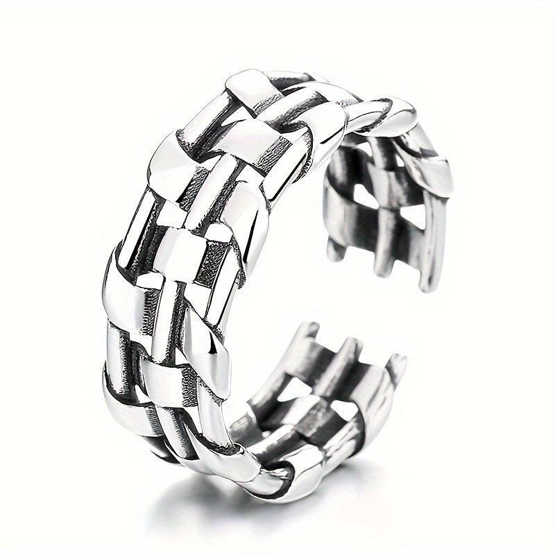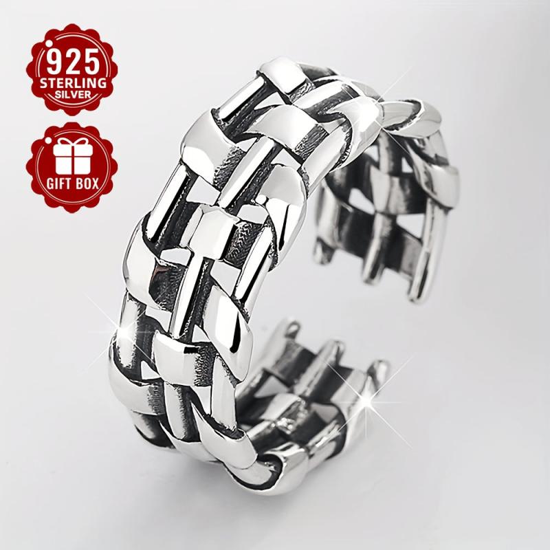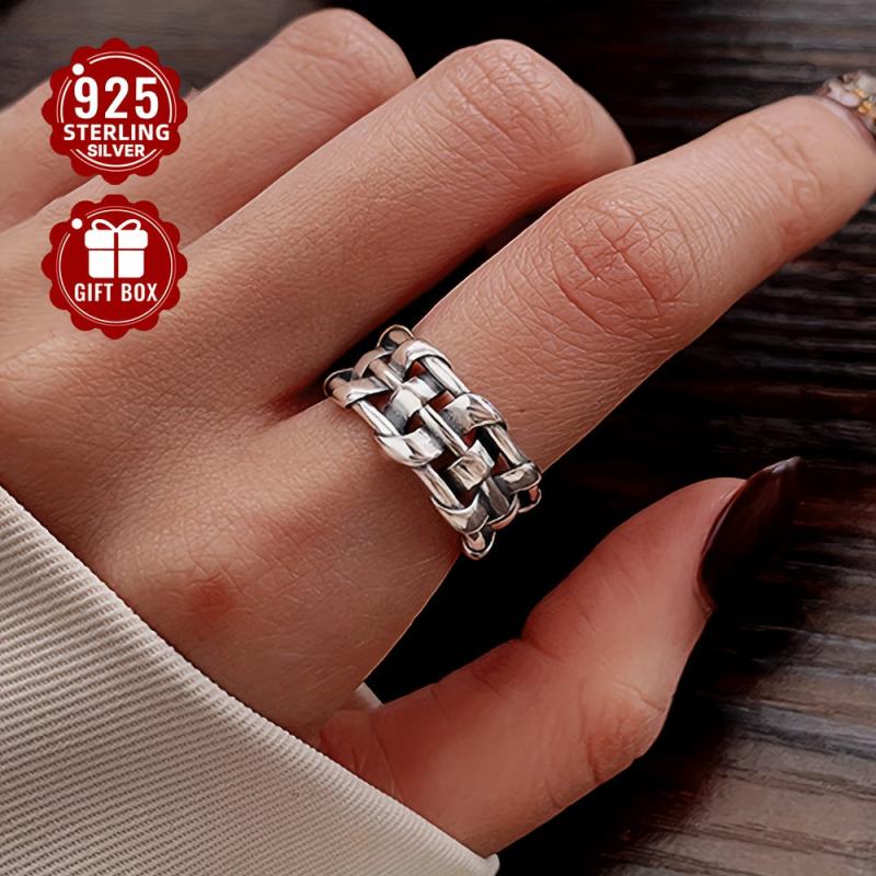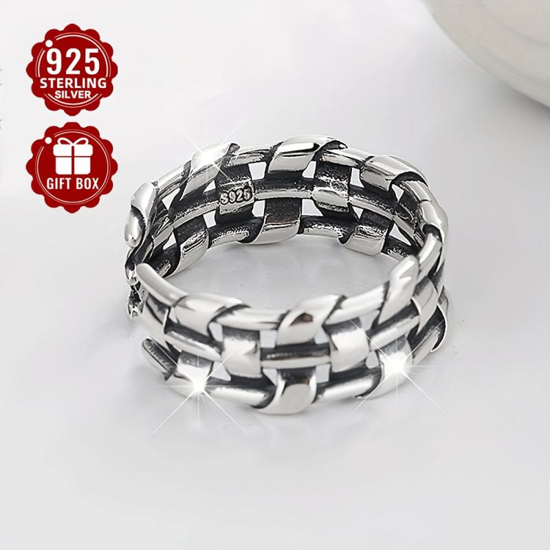 This unique ring is crafted from sterling silver and features an irregular wide woven twist design. It is perfect for both men and women with a personality punk style.