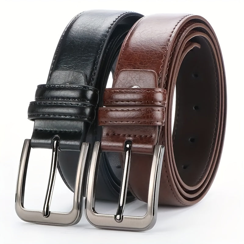 Elevate your style with this set of 2 men's faux leather belts featuring a vintage casual pin buckle. Perfect for daily commuting, dating, and business attire.