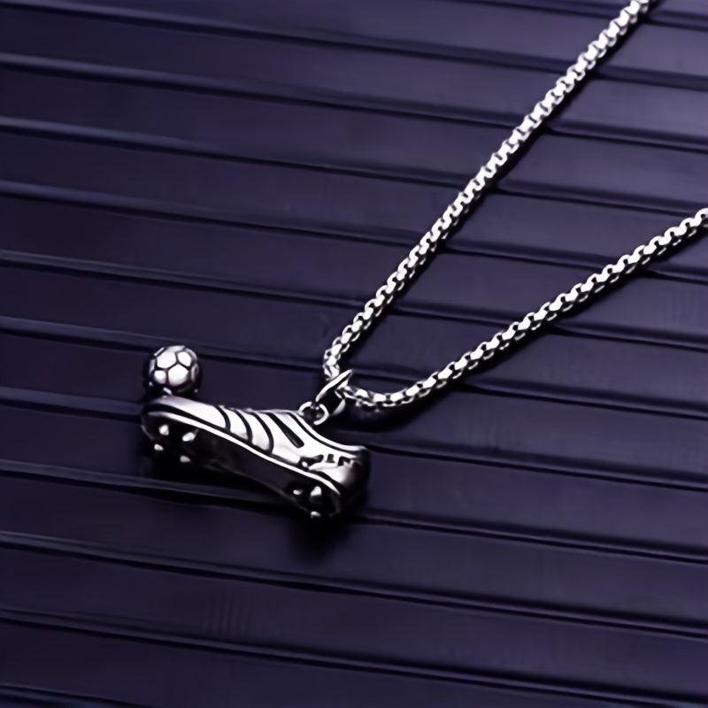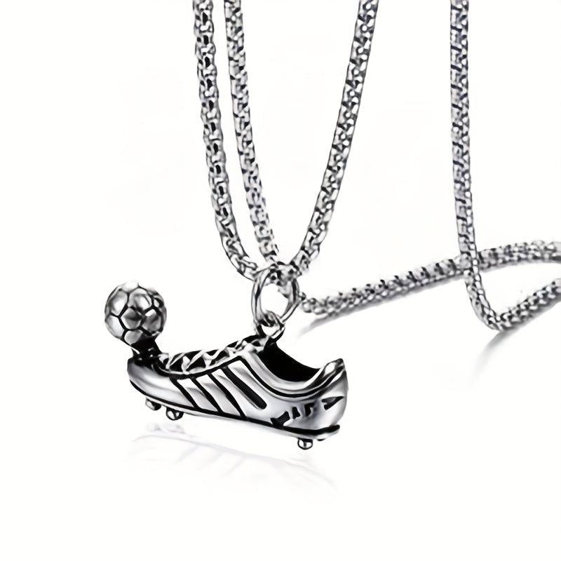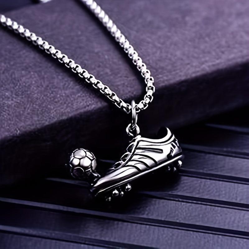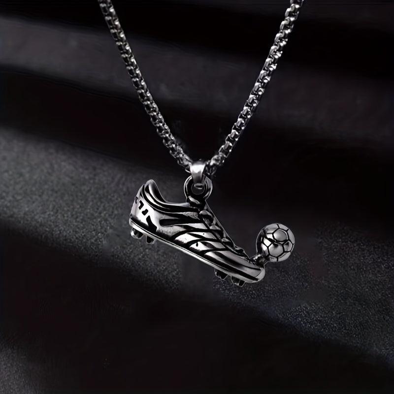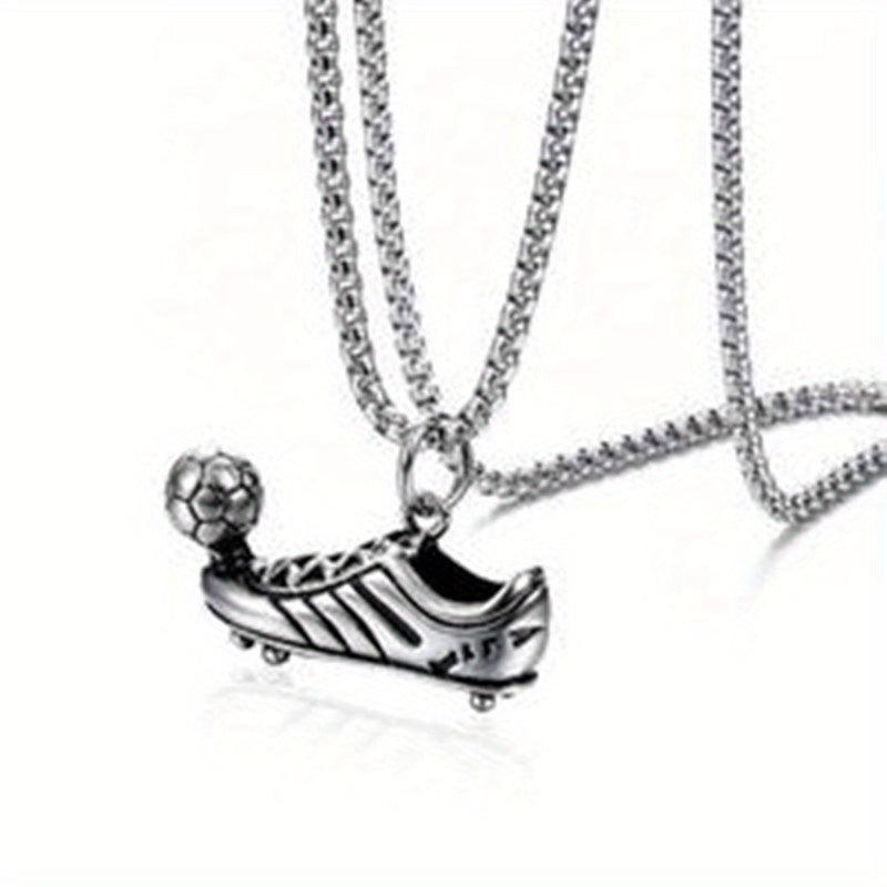This necklace features a unique design with sneakers and football elements, making it a perfect accessory for those who love punk and hip hop styles.
