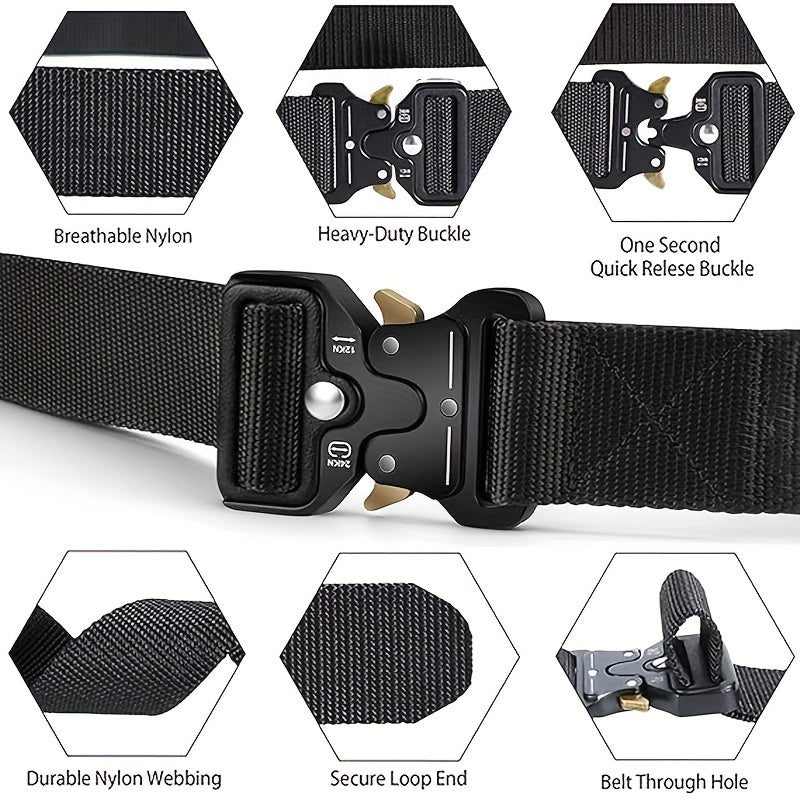 These Sopffy tactical belts are designed with military-style nylon webbing and feature quick release plastic buckles. Perfect for sports, work, and outdoor activities.