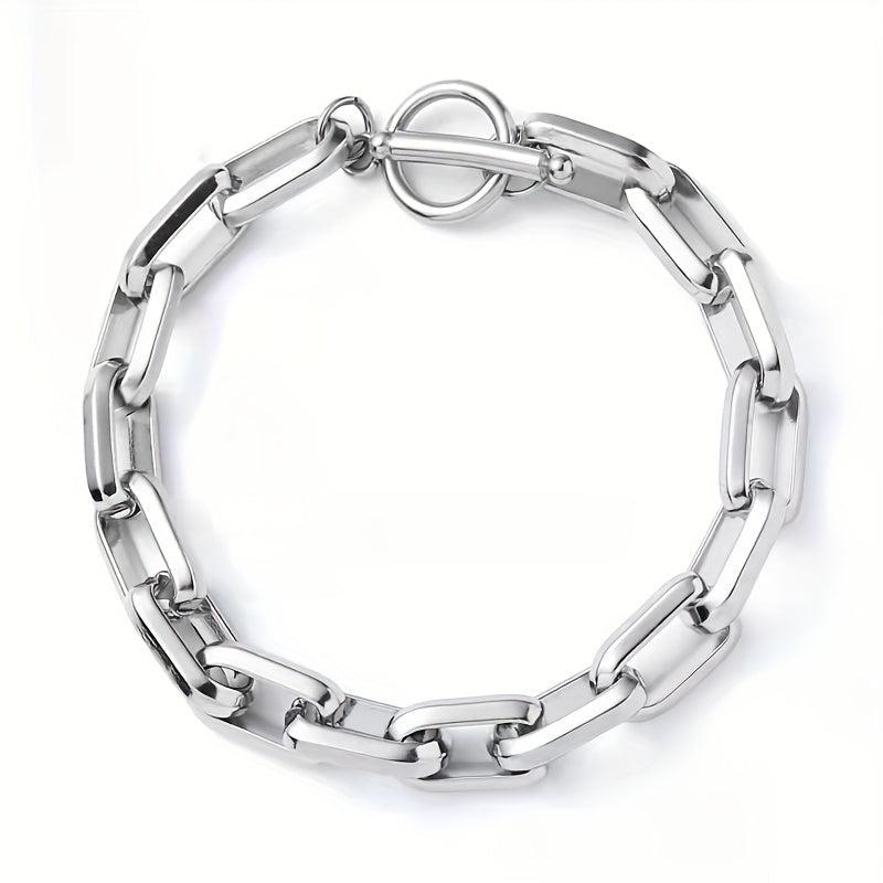 Get this stylish stainless steel bracelet designed for men and women. Show off your hip hop style with the OT buckle and Cuban chain.