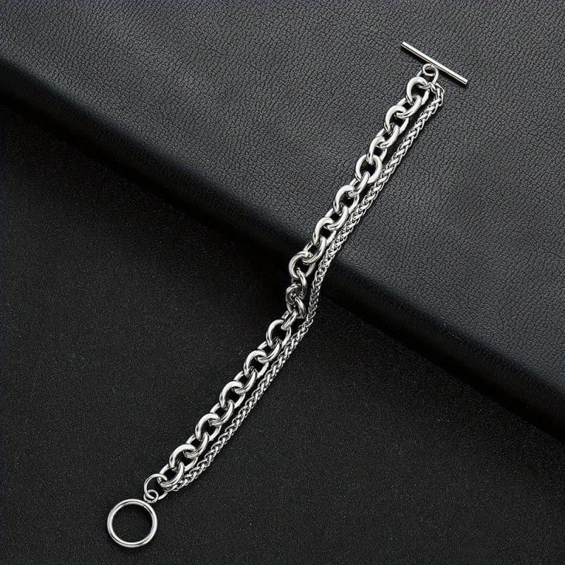 Stainless Steel Double Chain Bracelet Gift for Men and Women