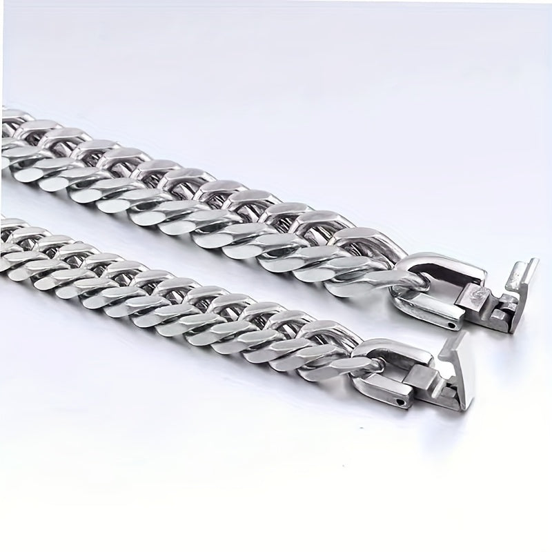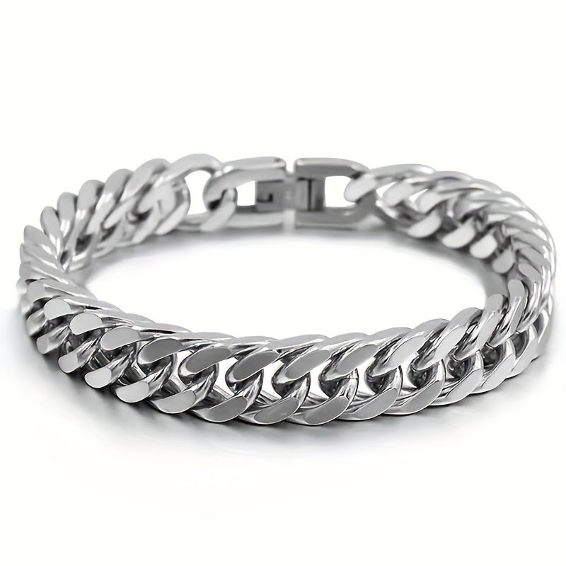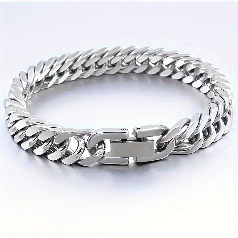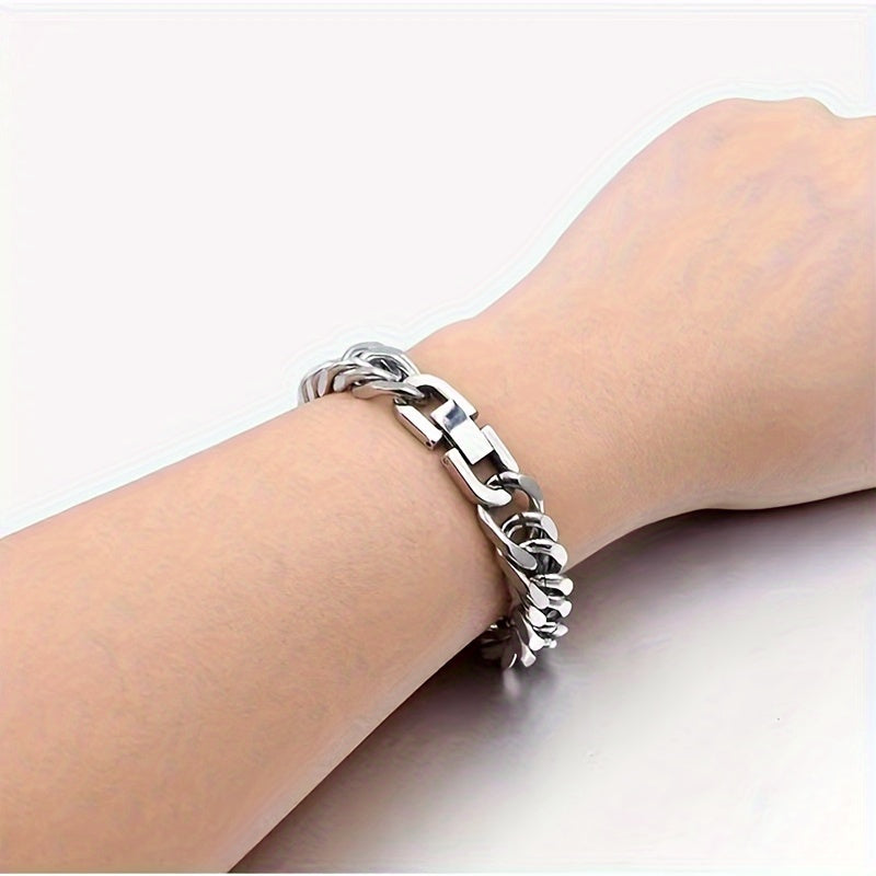 This sleek and modern titanium bracelet features a durable metal chain with a polished finish, making it a stylish accessory for men.