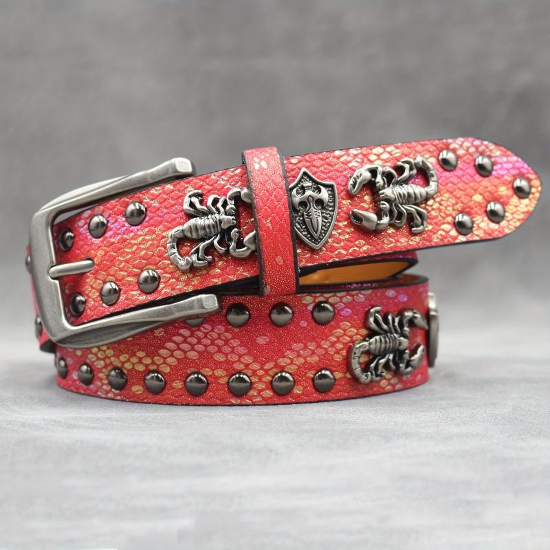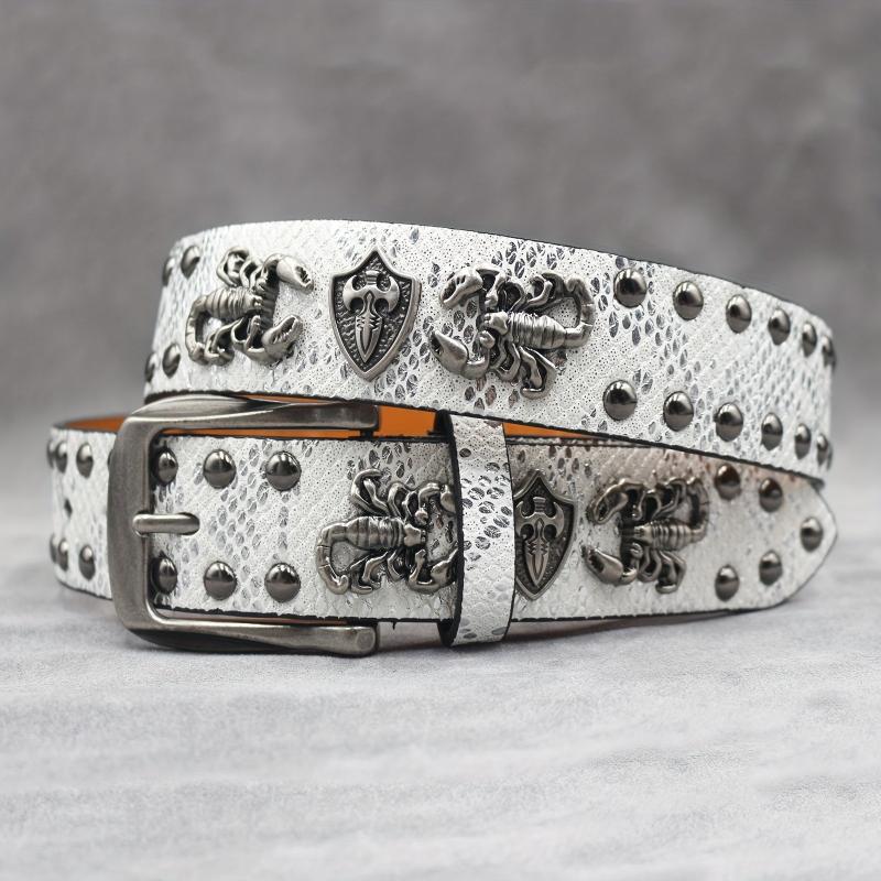 Express your punk rock style with this studded belt featuring a scorpion rivet design. Perfect for men and women who want to add a edgy touch to their outfits.