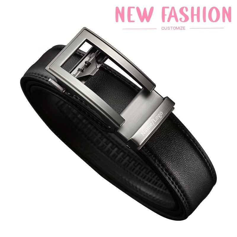 Elevate your formal and casual wear with this personalized engraved alloy automatic buckle men's belt. Perfect as a holiday gift for male relatives, friends, or fathers.