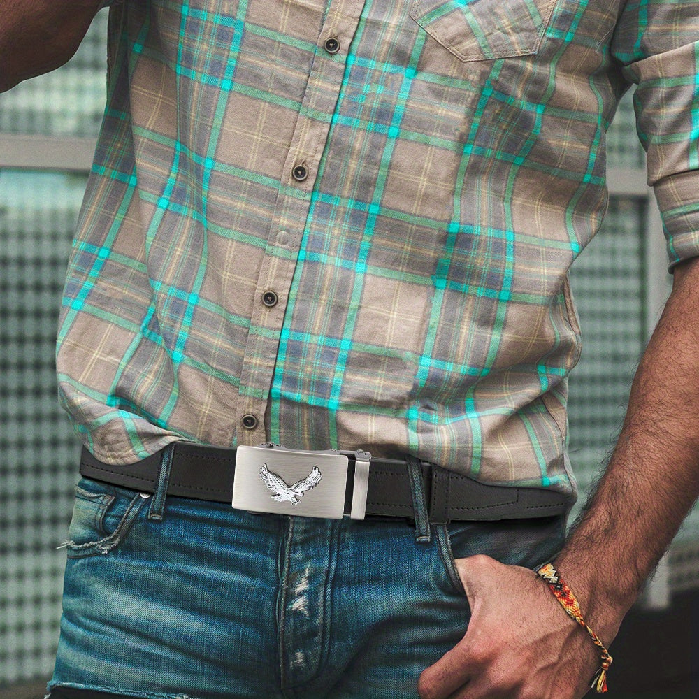 Adjustable belt made of durable polyurethane and alloy, perfect for formal or casual attire. Comfortable and versatile design.